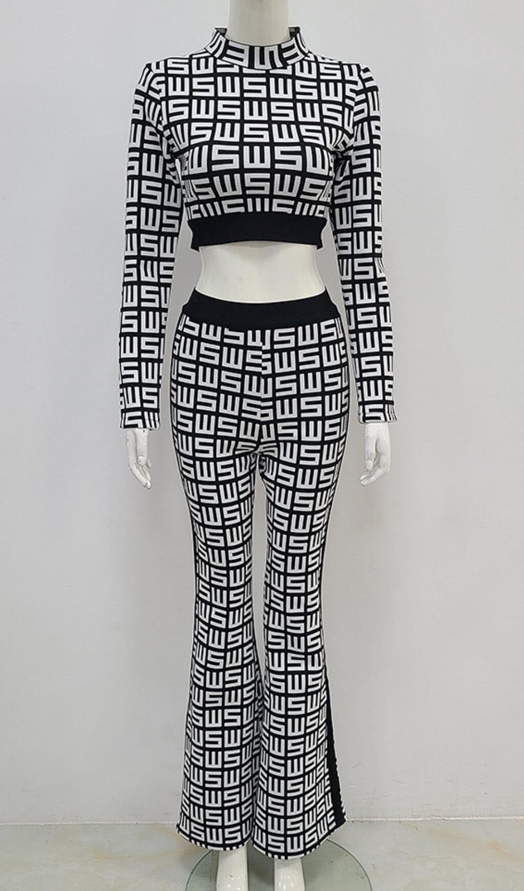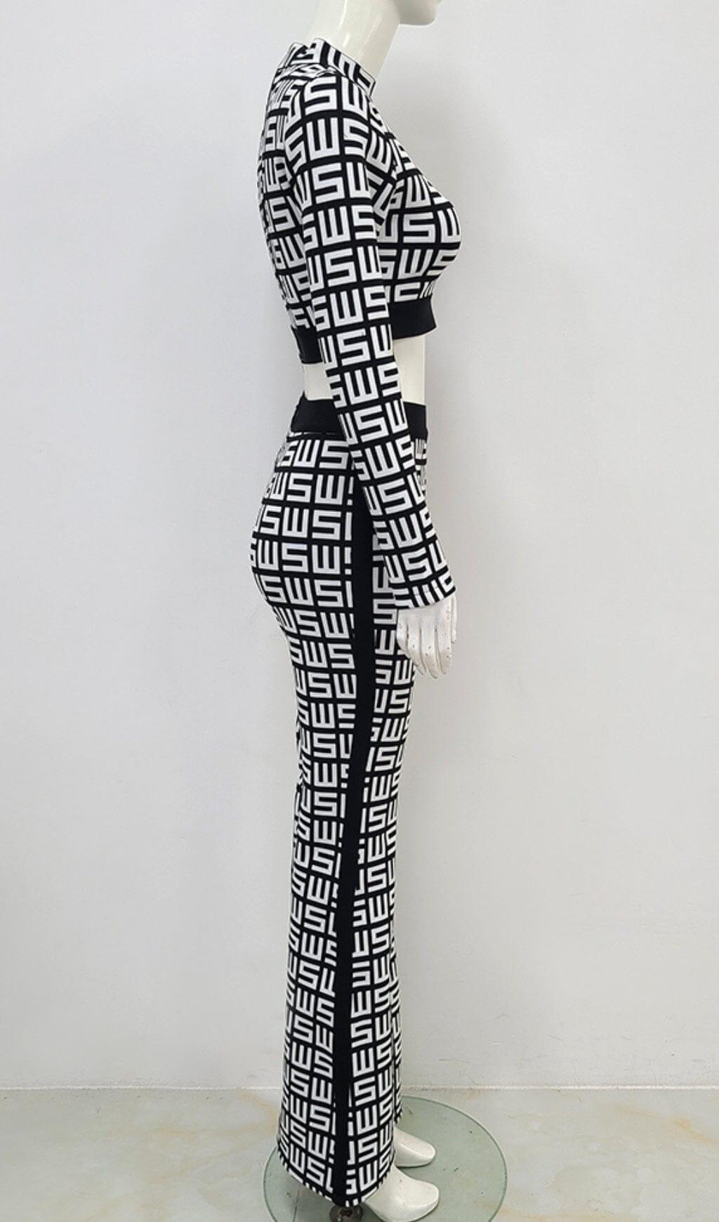 MONOGRAM PRINTED SHOULDER PAD SUIT IN WHITE AND BLACK