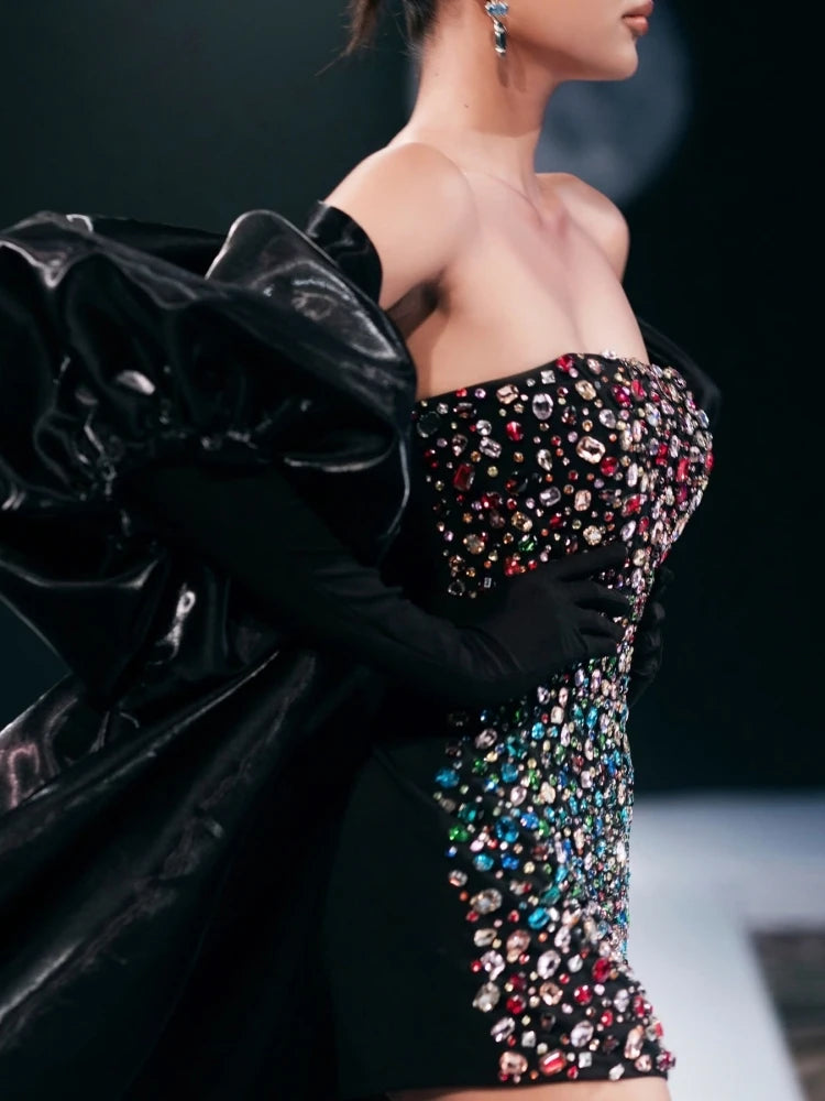 Its eye-catching crystals will make you stand out at any event, while the strapless design adds a touch of elegance. A must-have for any fashion-forward individual.