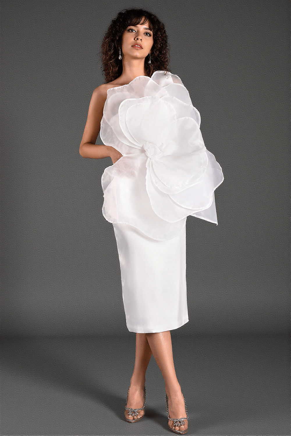 The Mustelis One Shoulder 3D Floral Midi Dress is designed for those who appreciate fine craftsmanship and attention to detail. Whether you're looking to make a statement at your next special event or simply want to enhance your wardrobe with an elegant piece, this dress delivers.