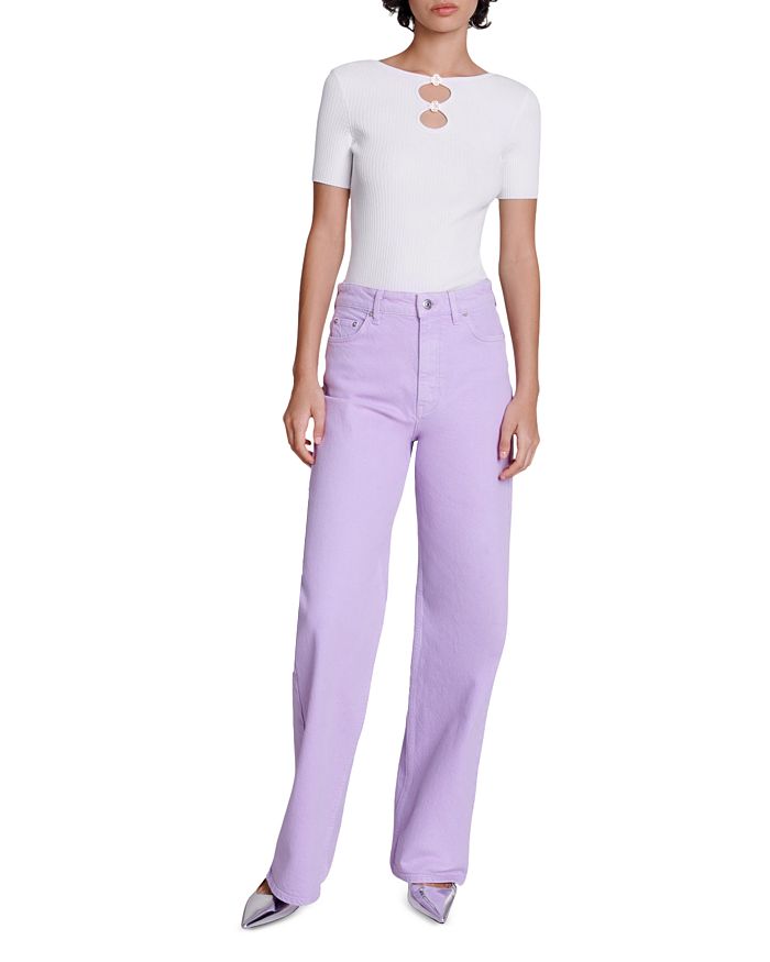 This playful, ribbed top features unique cutouts that add a touch of intrigue to your outfit. Stay stylish and stand out from the crowd with this quirky top.