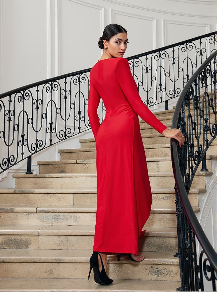 Be bold and daring with the Nakano V Neck Ruched Dress in Red. This eye-catching dress makes an impact with its flattering cut and vibrant red hue. Step out in style with this confident and daring look!