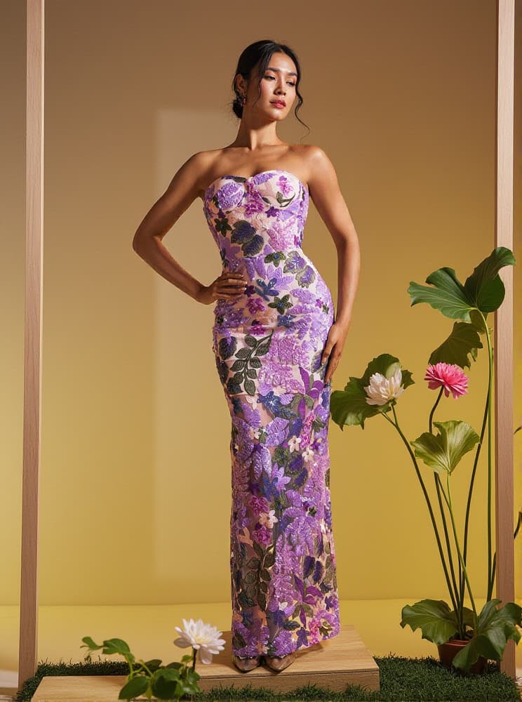 Nakoa Strapless Sequin Embroidered Maxi Dress