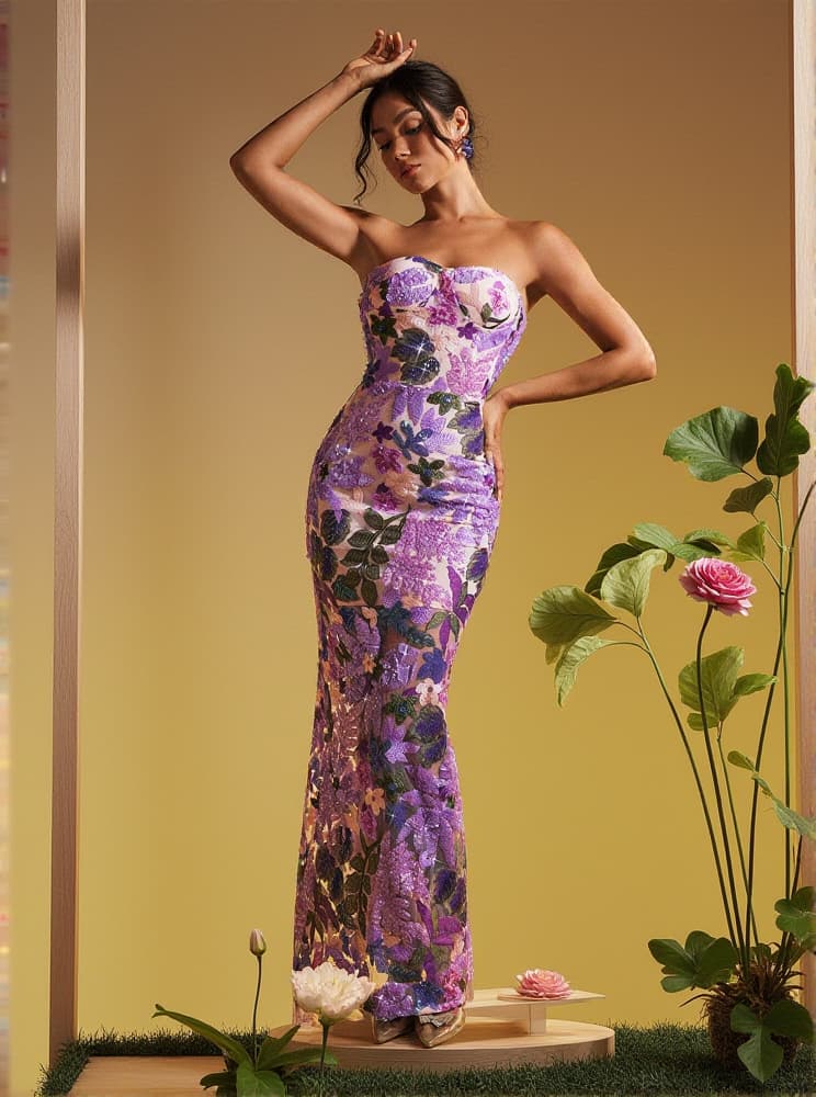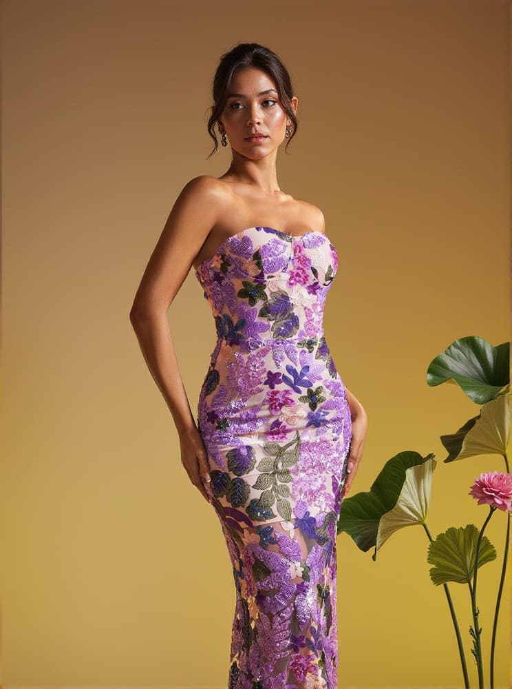 Be the center of attention in the stunning Nakoa Strapless Sequin Embroidered Maxi Dress! With its intricate sequin embroidery and elegant strapless design, this dress will surely turn heads. Show off your unique style and shine bright with confidence in this captivating dress.