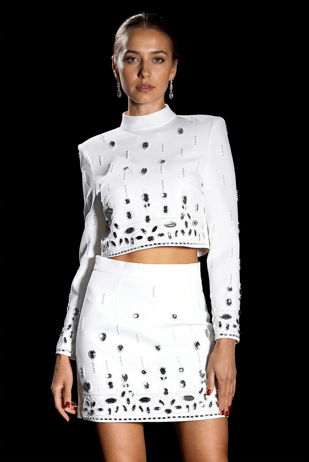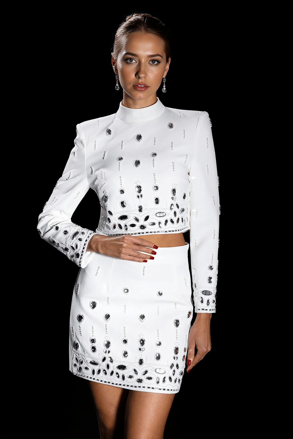 From its intricate beadwork to its rhinestone embellishments, every detail has been carefully considered to ensure that you look and feel extraordinary when wearing this stunning mini set. It's more than just an outfit; it’s a statement piece designed for those who want to make their mark.