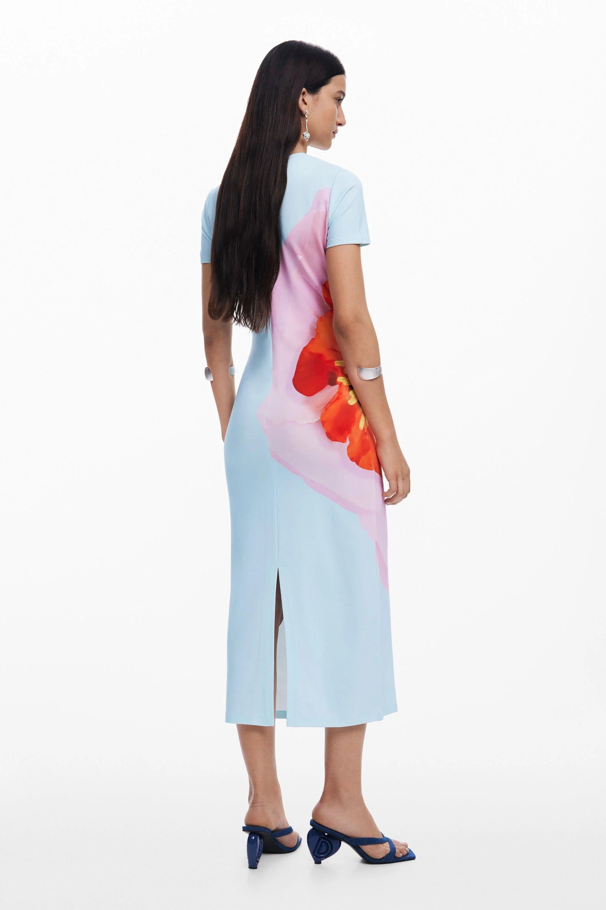 nancy floral print midi dress in blue
