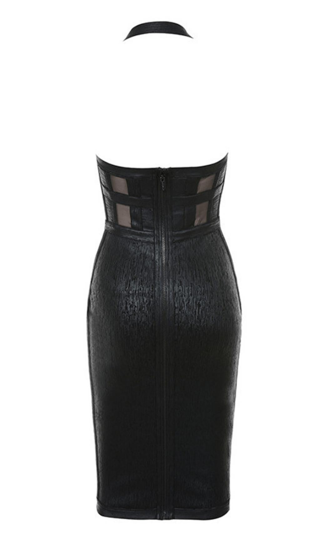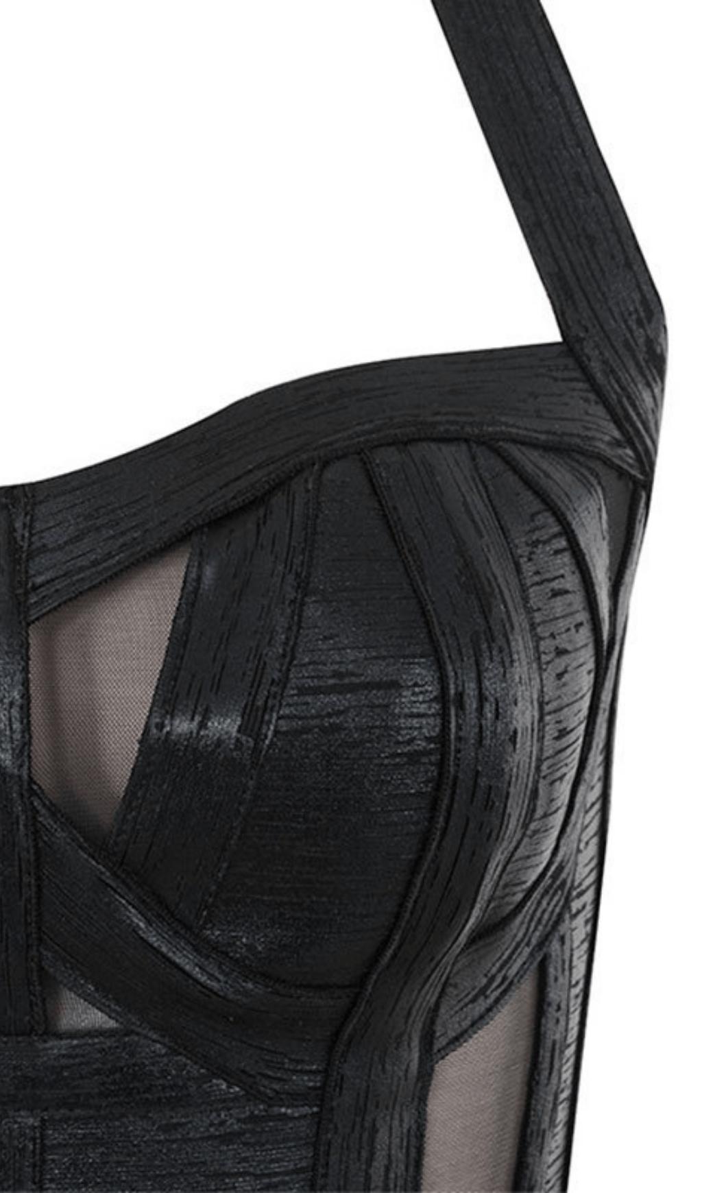 NECK BLACK METALLIC BANDAGE DRESS - BLACK