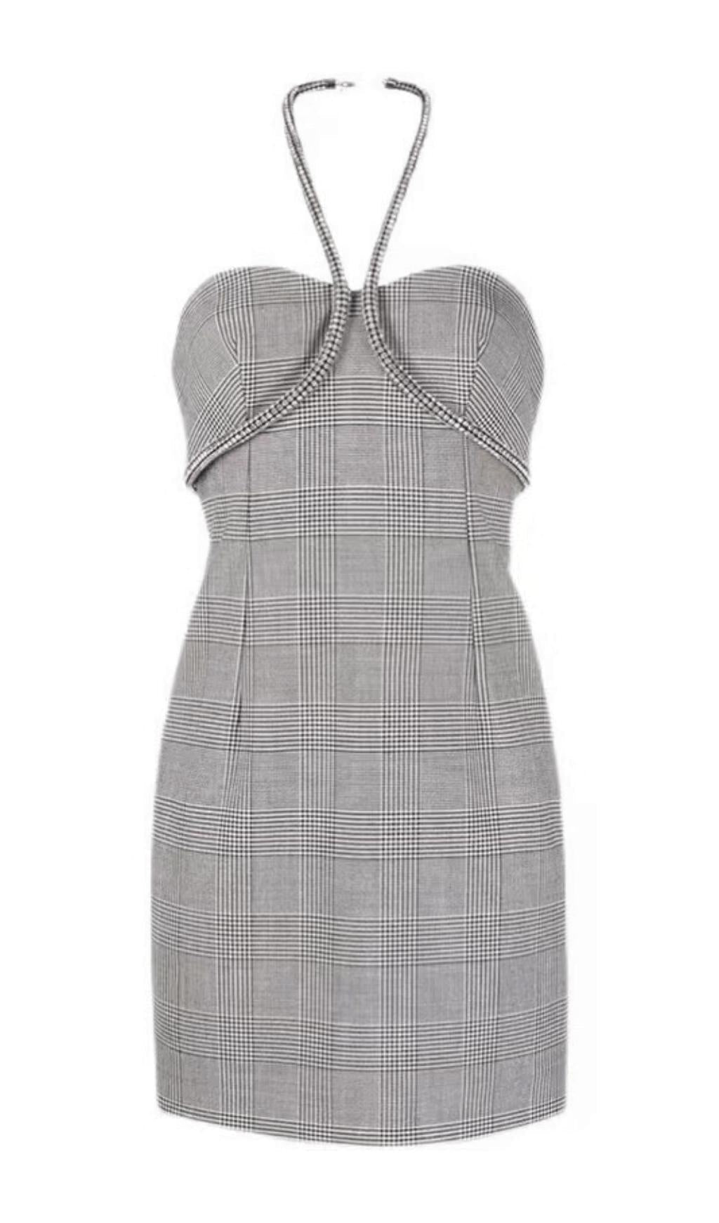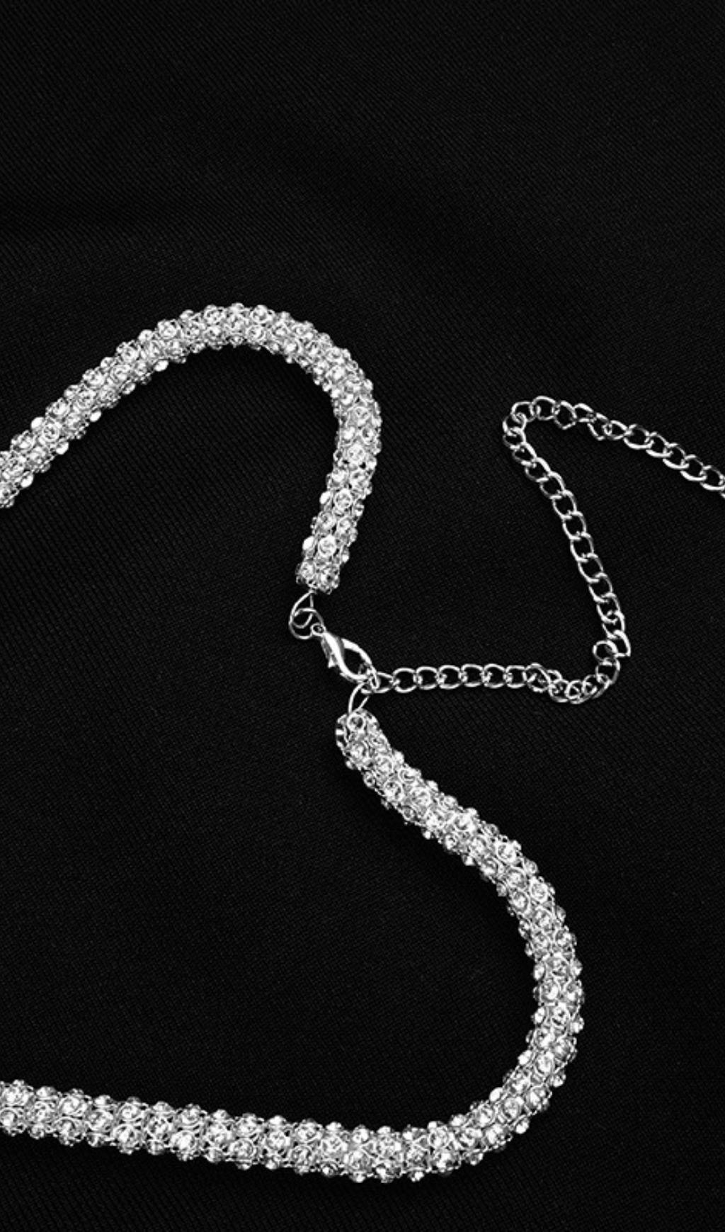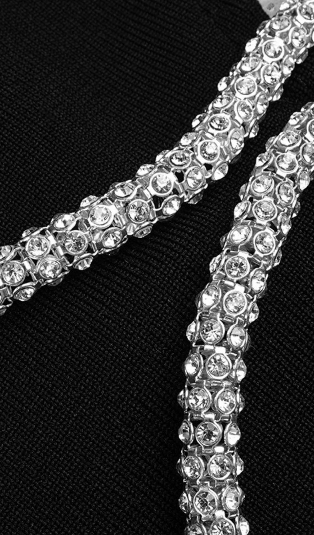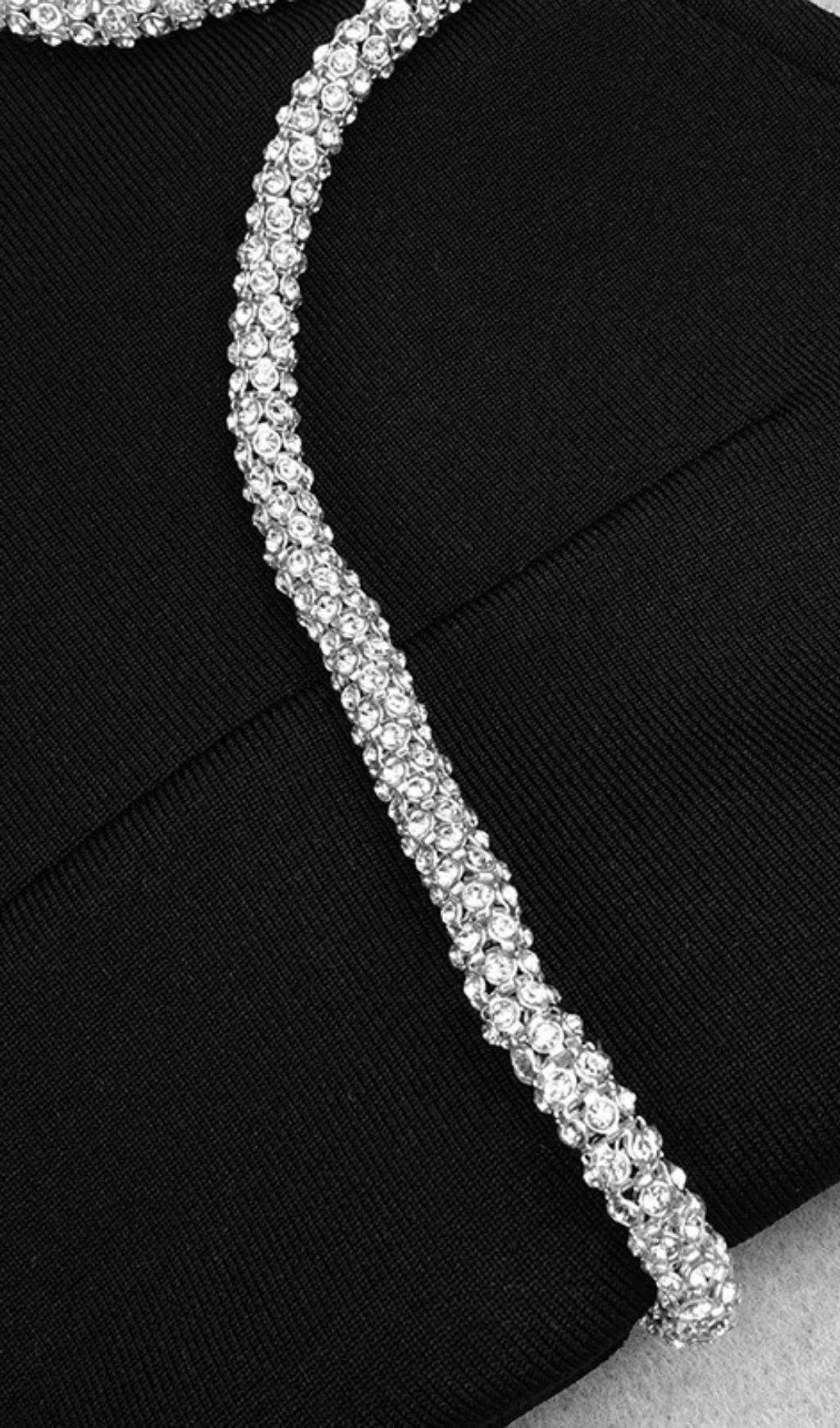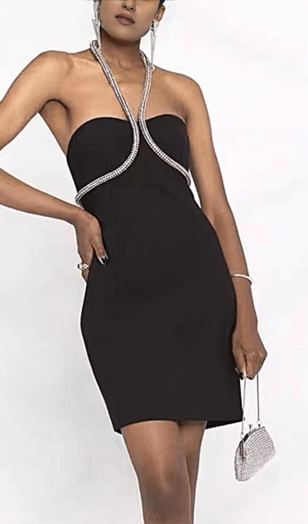 CRYSTAL NECKLACE MINI DRESS IN BLACK