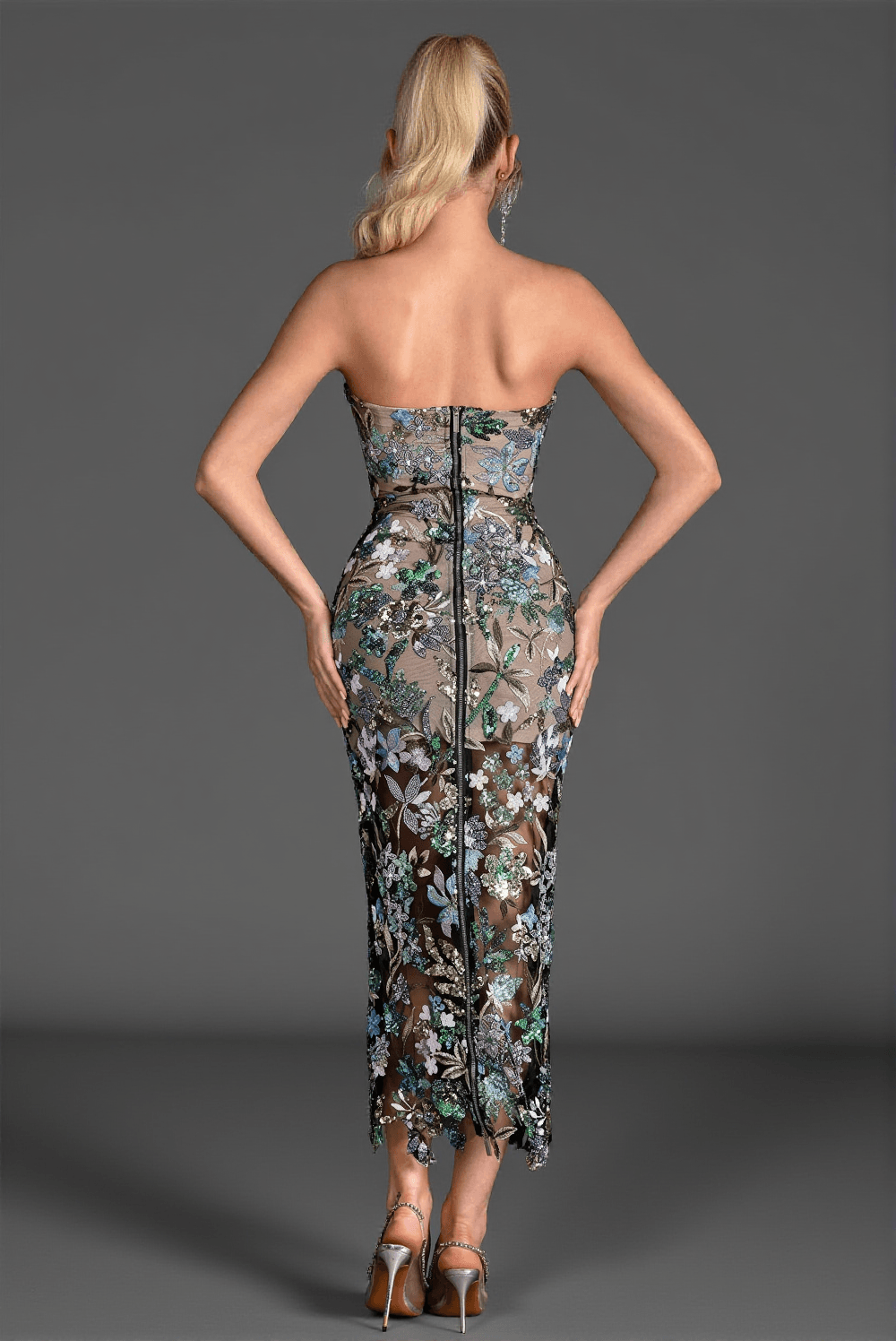 • Silver sequins are meticulously placed to reflect light beautifully, adding a touch of glamour and elegance.