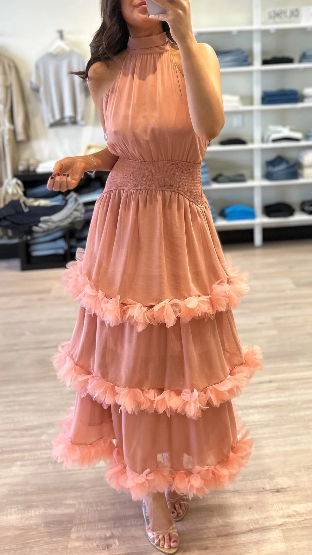 Made from high-quality fabric, it features tiered layers for a flattering silhouette. Perfect for any occasion, this dress offers both comfort and style. Elevate your look with this must-have piece.