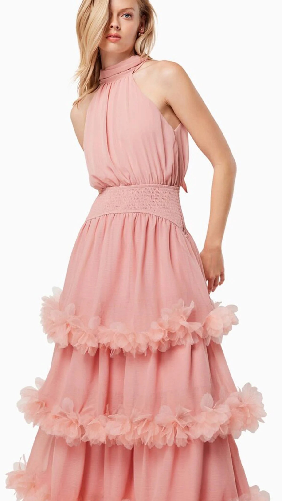 NEREIDA TIERED MIDI DRESS IN PALE ORANGE
