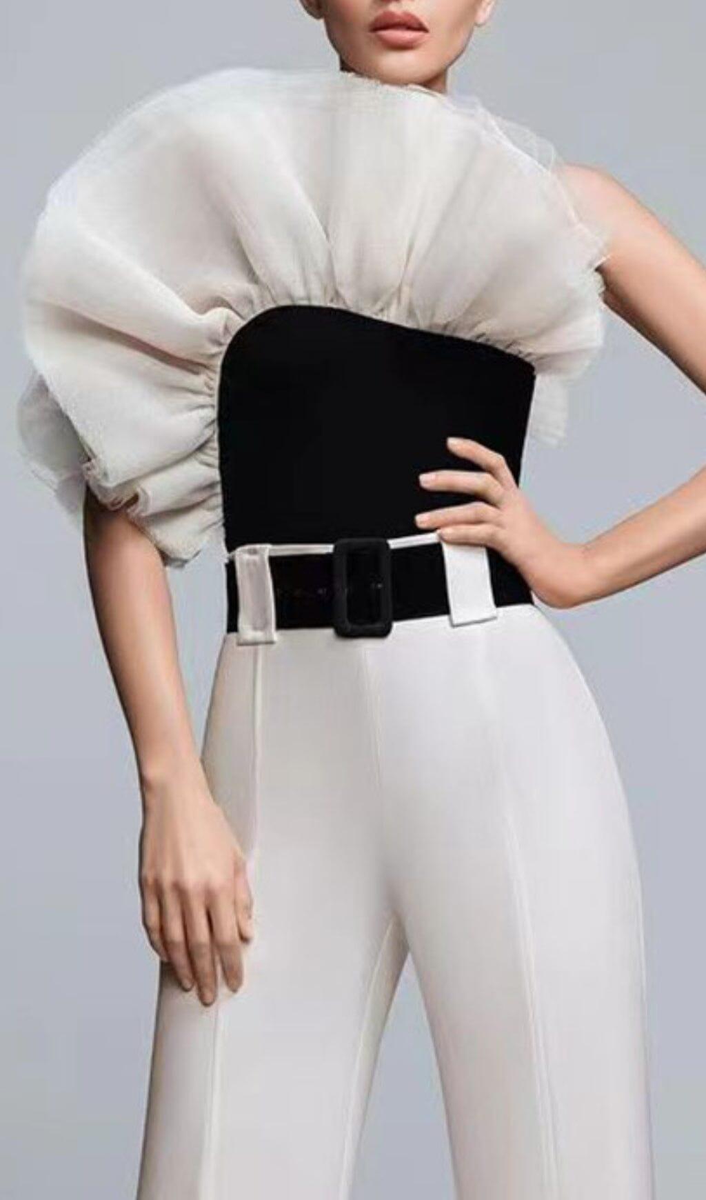 NET YARN RUFFLE ONE PIECE SWIMSUIT