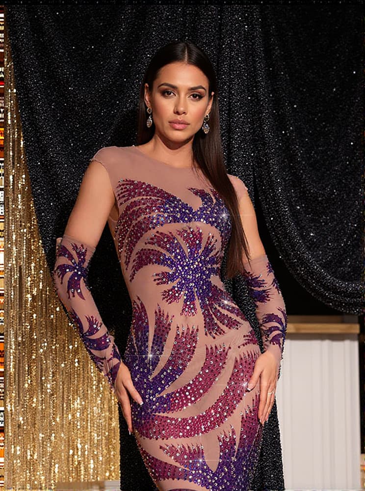 This beautiful Nica Printed Rhinestone Mesh Maxi Dress features intricate rhinestone detail on the mesh layer, making it perfect for a formal event. With a flattering fit and an airy, lightweight design, this dress is perfect for the stylish woman. The mesh layer is made of a fine-quality material that ensures a comfortable fit.
