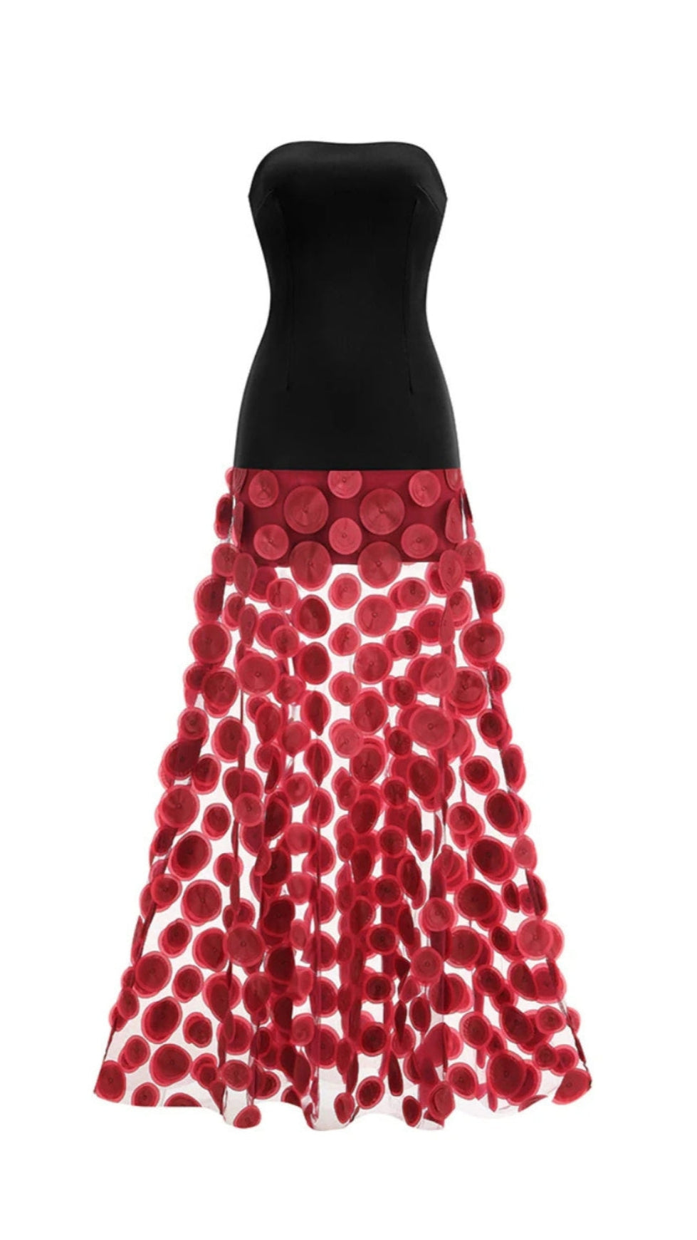 NODIN STRAPLESS DOT MESH MAXI DRESS IN RED
