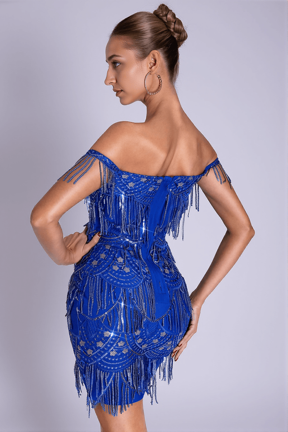 The Nomi Sequin Fringe Floral Mini Dress captivates with its exquisite blend of shimmering sequins, playful fringe accents, and delicate floral embroidery. This stunning mini dress is tailored for those special occasions and glamorous evening events where you want to stand out.