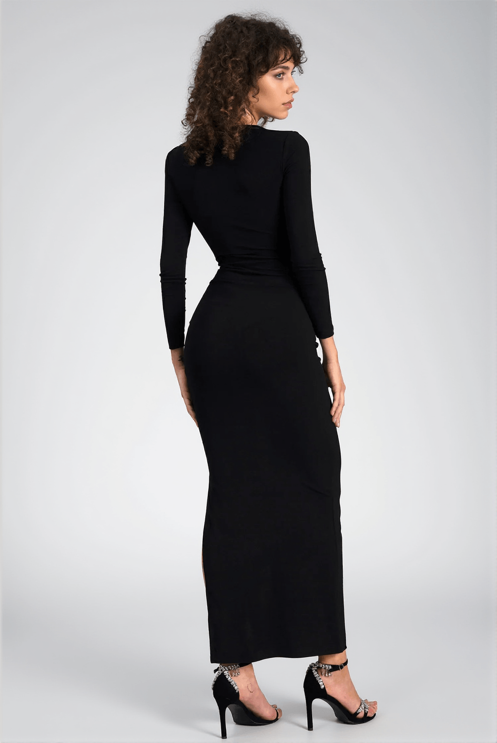 The Nomiki Long Sleeve Cutout Maxi Dress looks stunning on the model, showcasing its versatility and timeless appeal.