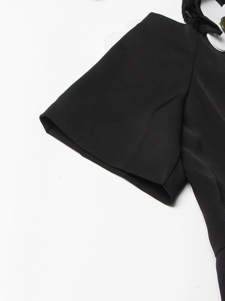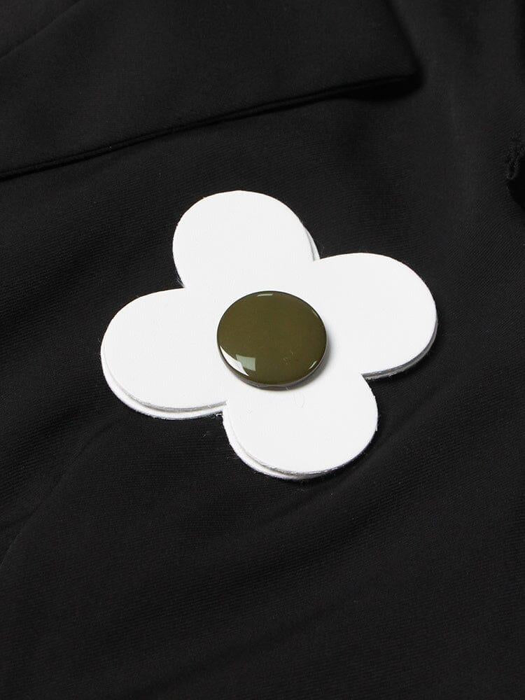 NOTCHED SHORT SLEEVE PATCHWORK APPLIQUES SINGLE BREASTED MINI DRESS