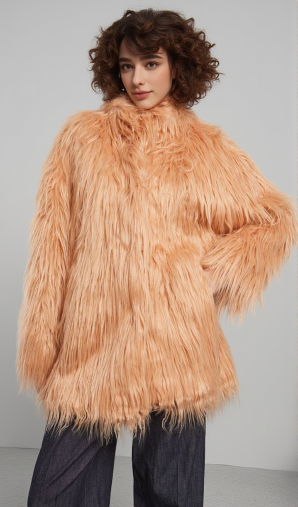 nude pink fur coat