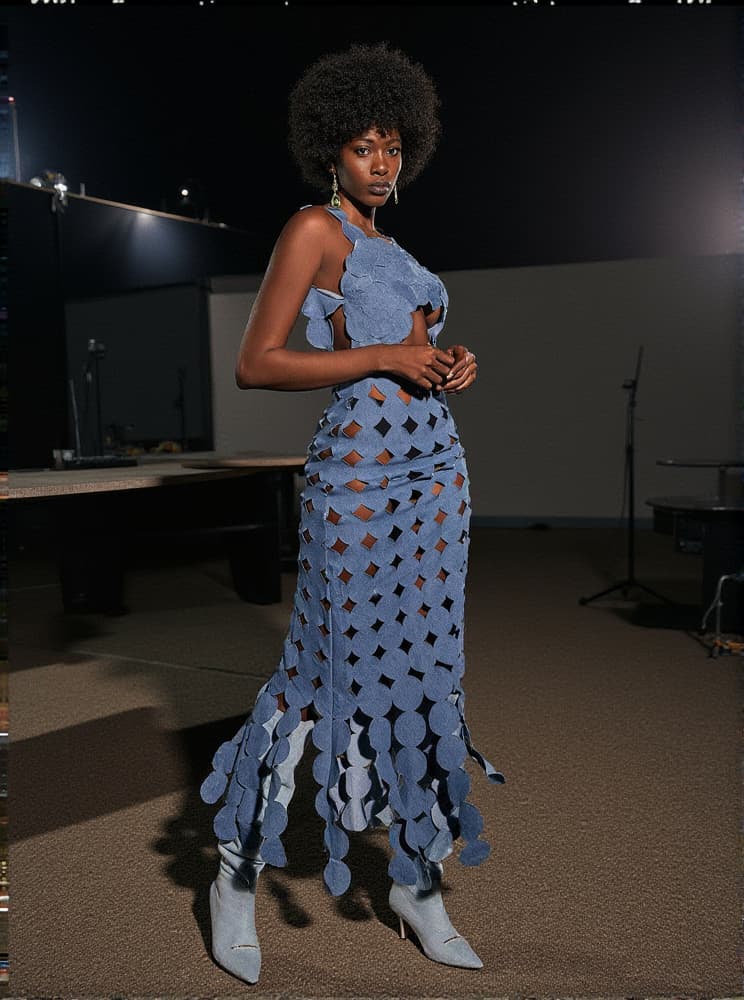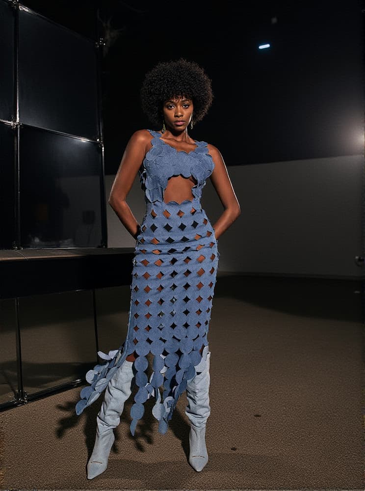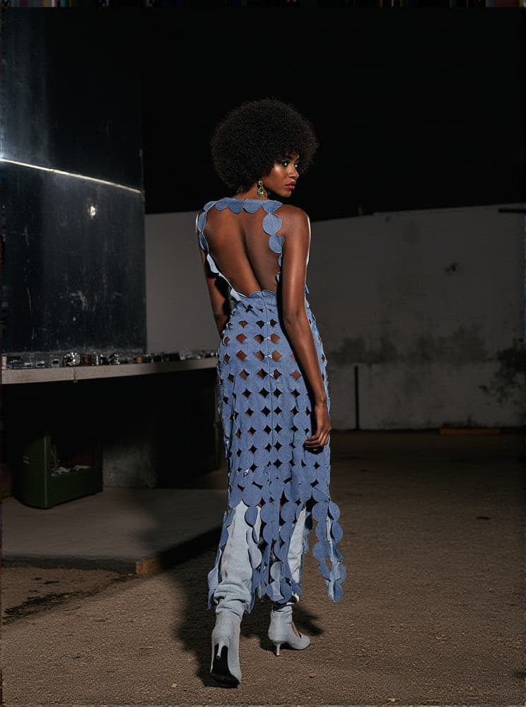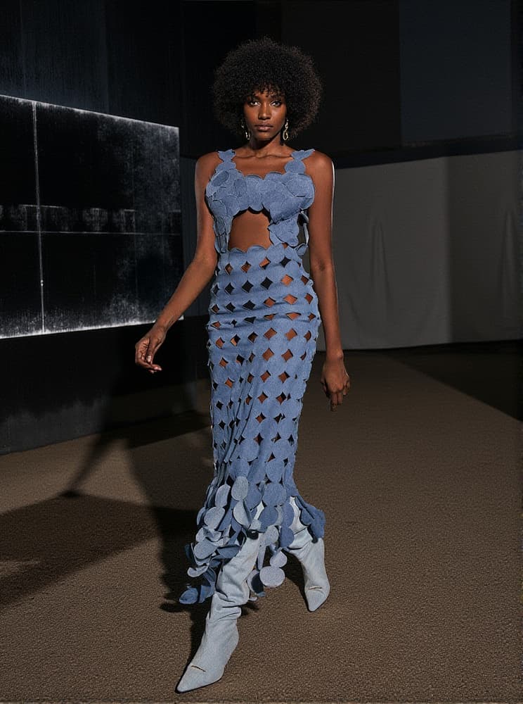 Nyx Circle Cutout Fringe Denim Maxi Dress