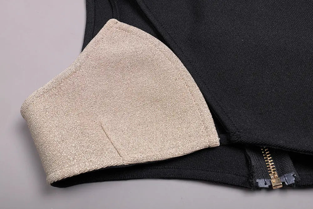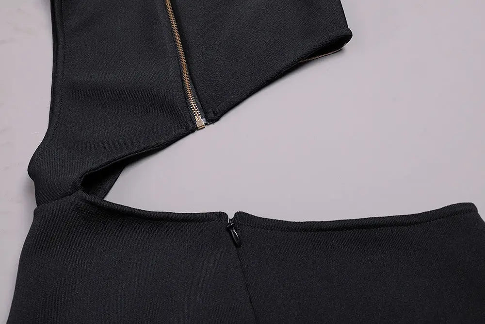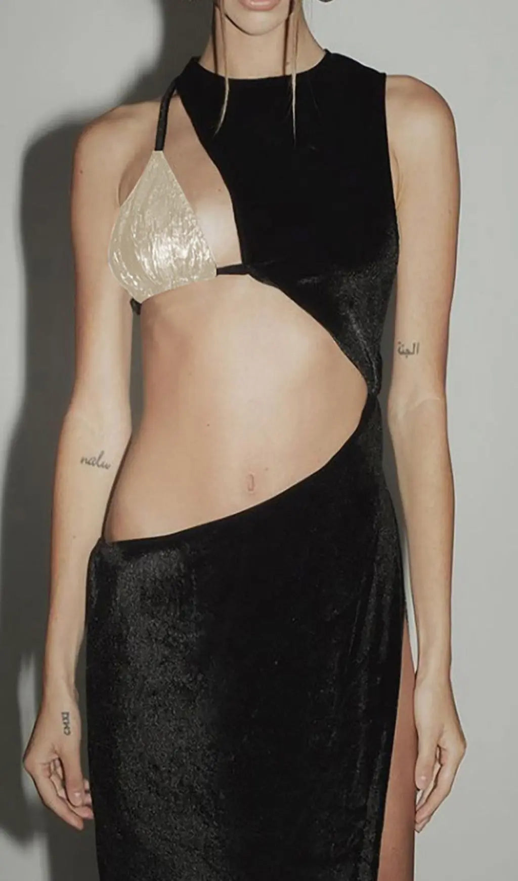 BLACK CUTOUT HIGH SPLIT MAXI BANDAGE DRESS