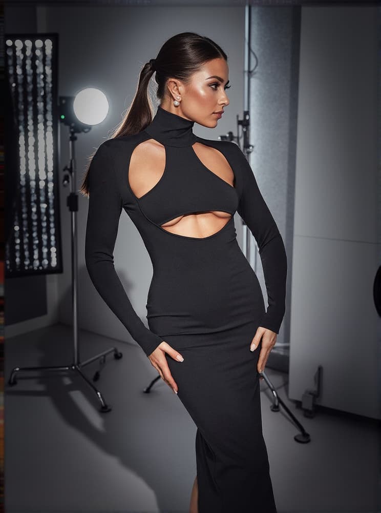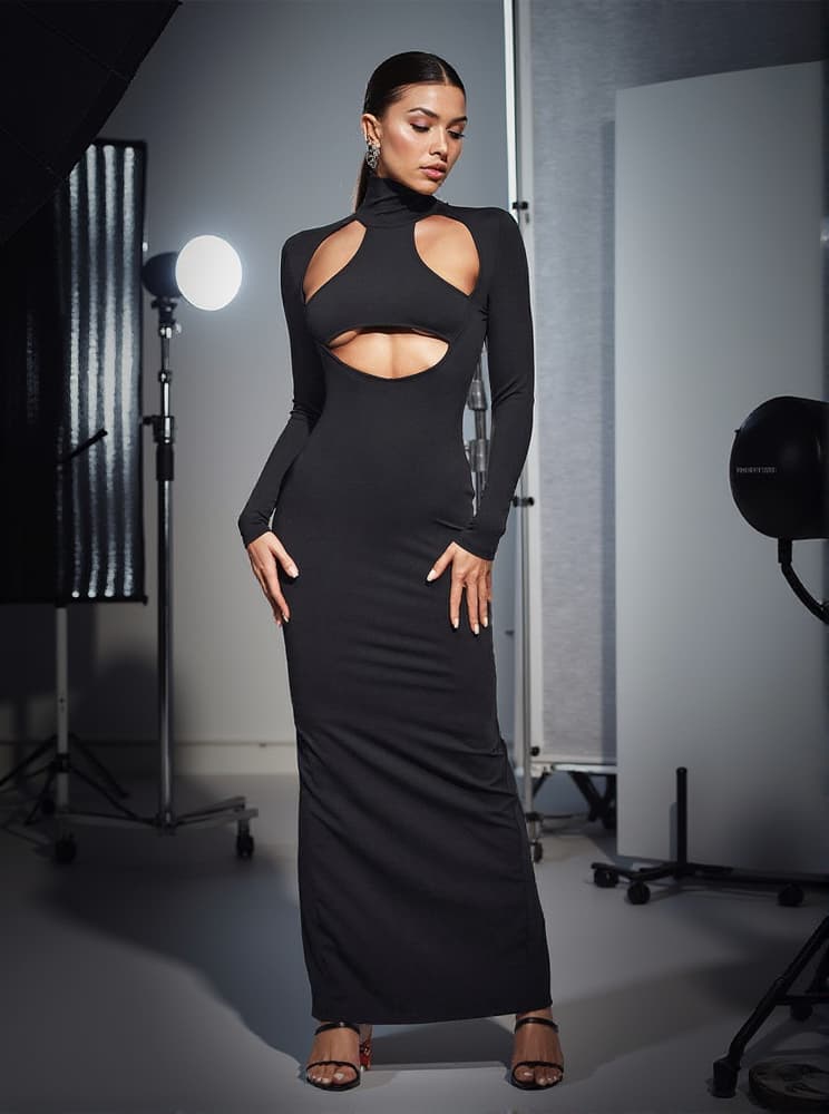 Oakley Turtleneck Long Sleeve Cutout Dress