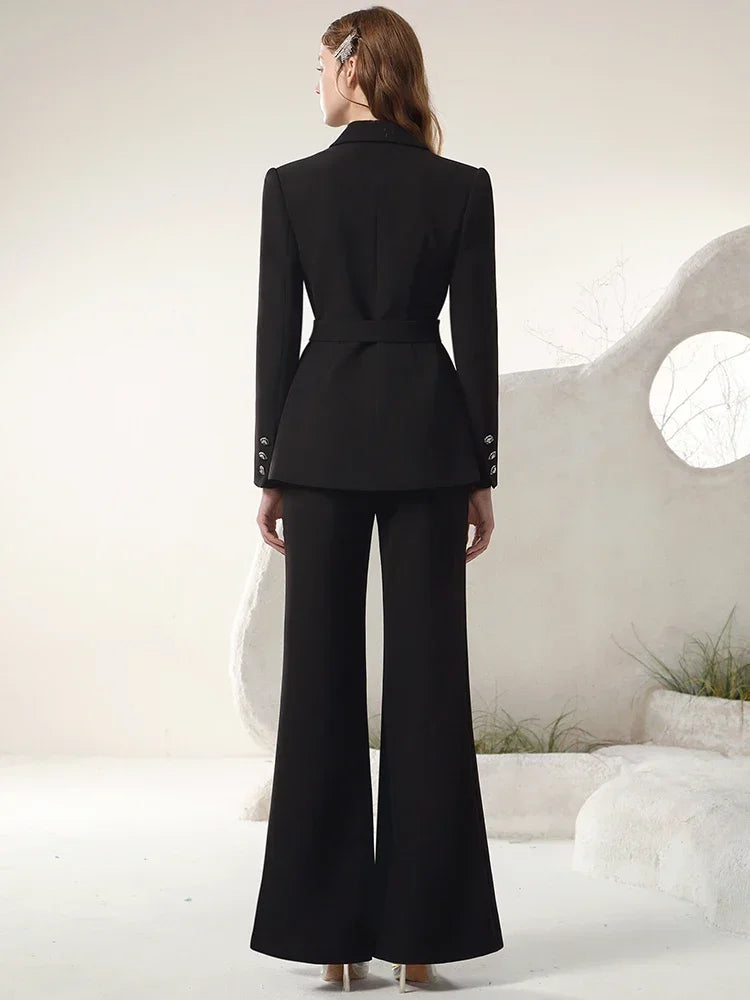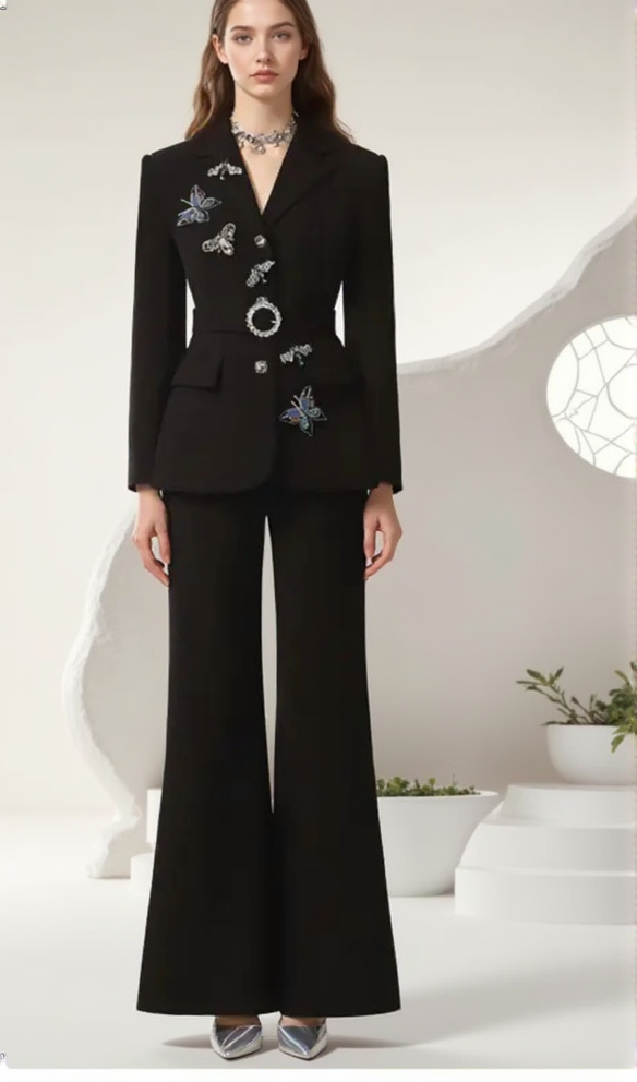 OCTAVIA BUTTERFLY EMBELLISH BLACK JACKET PANTS SUIT