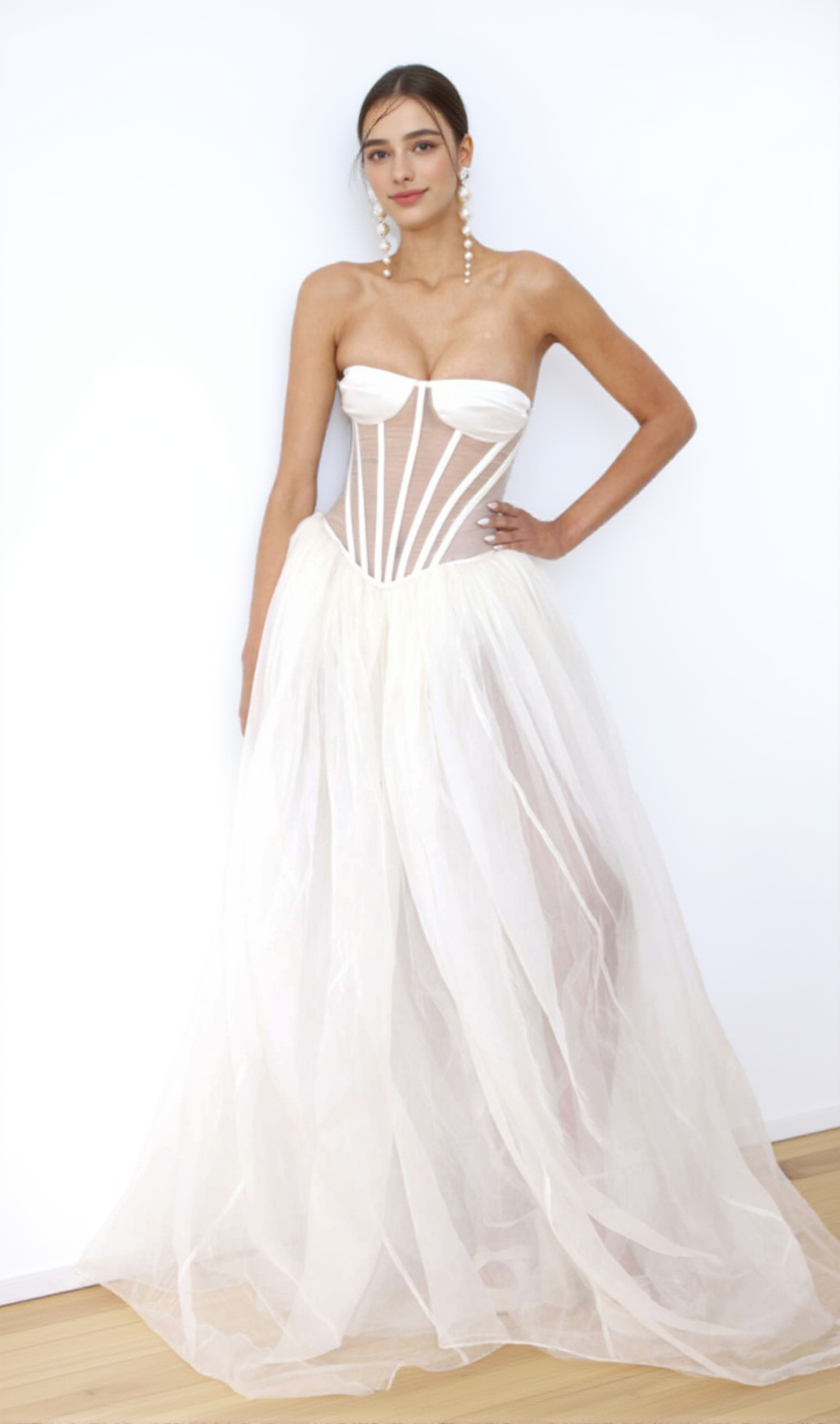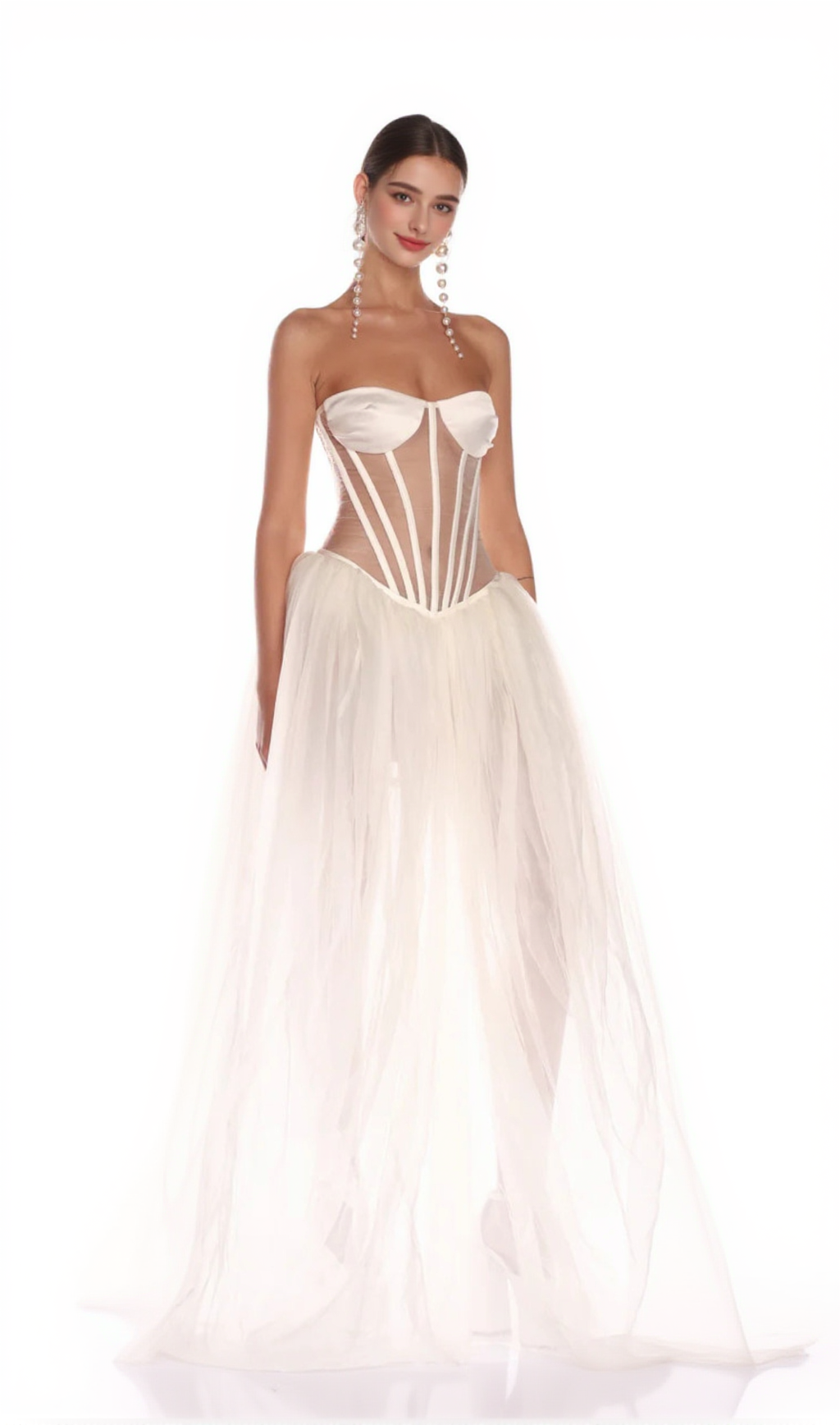 Its strapless design provides a flattering and comfortable fit, while the classic white color adds a timeless touch. Made with high-quality materials, this gown is sure to make you look and feel confident and beautiful.