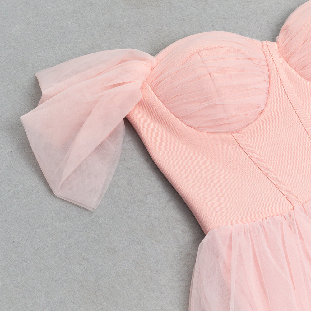 OFF SHOULDER CORSET A LINE MIDI DRESS IN PINK