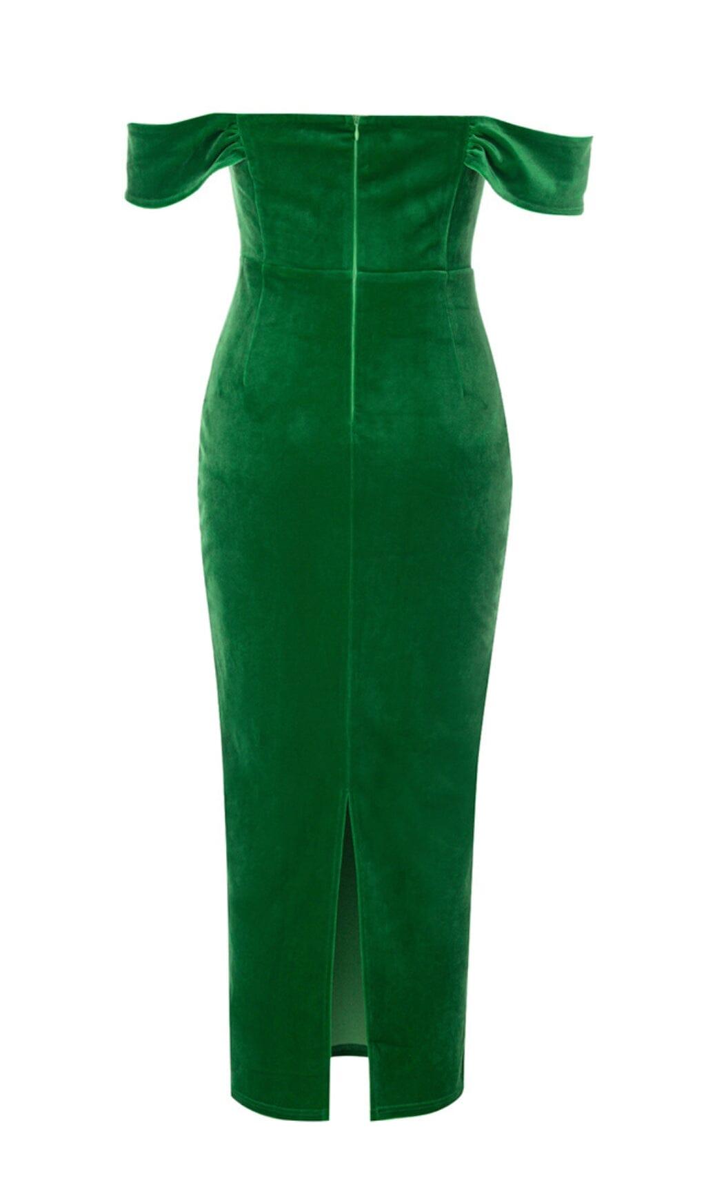 OFF SHOULDER CORSET MIDI DRESS IN GREEN