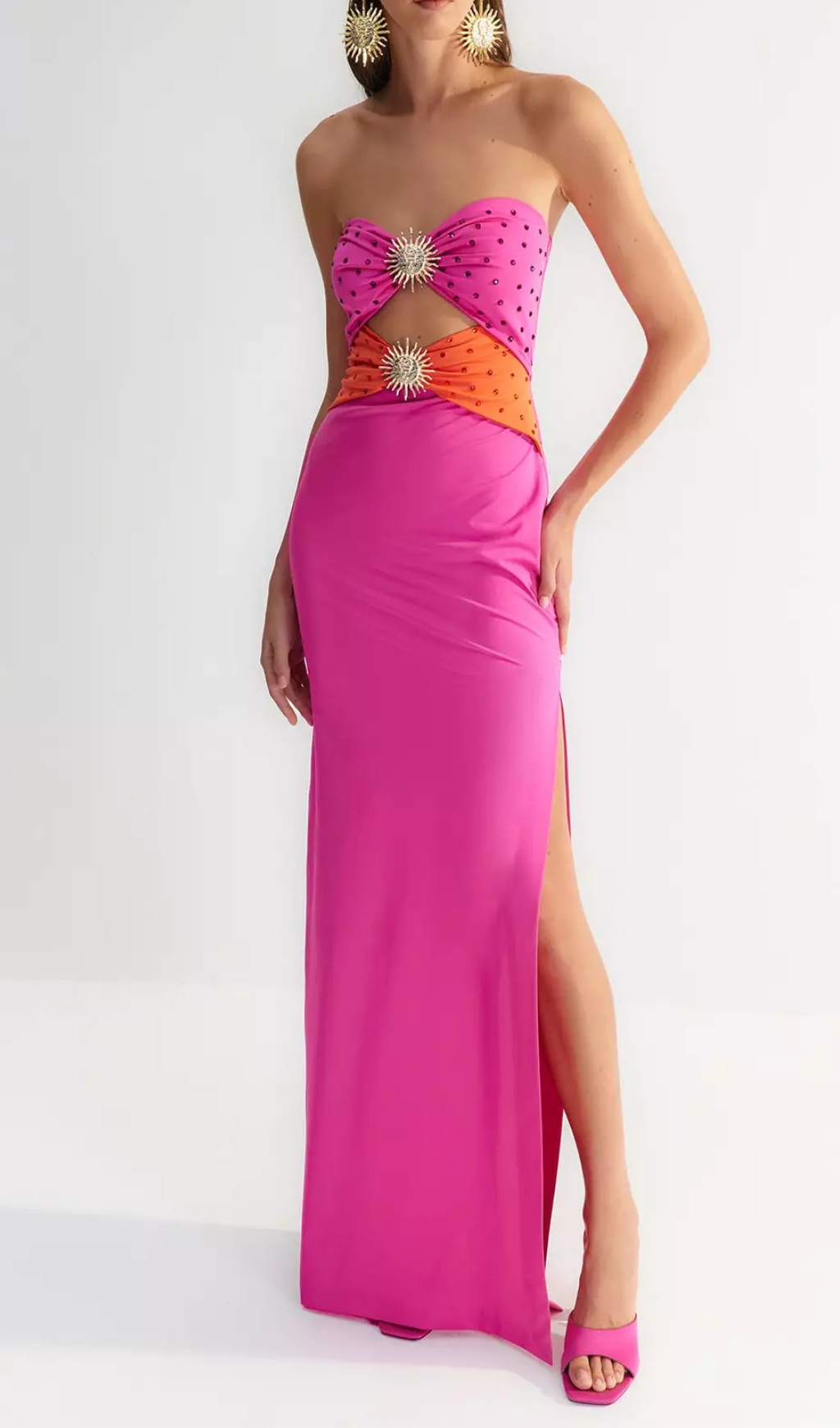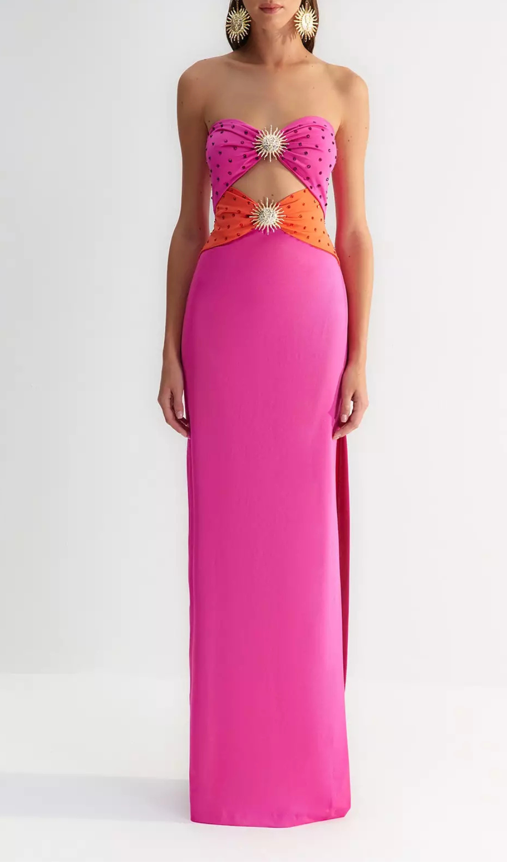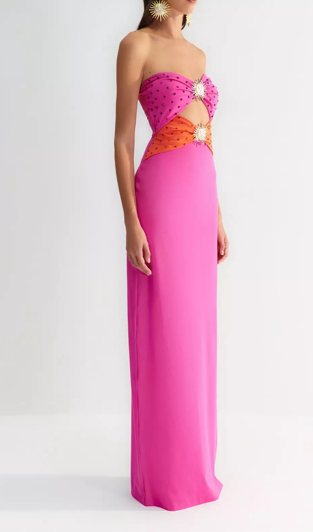 OFF-SHOULDER CRYSTAL CUTOUT BANDAGE DRESS