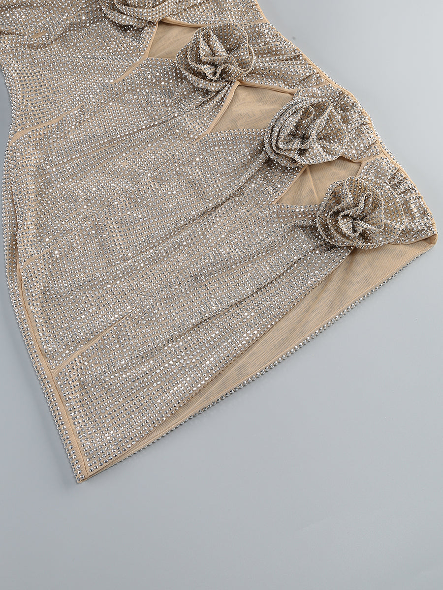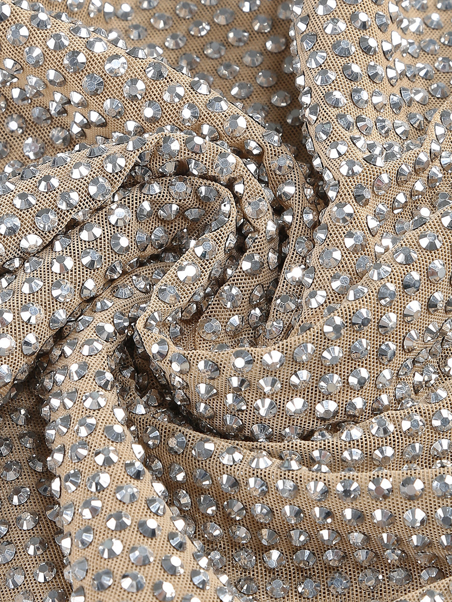 Sparkle and shine in our silver off-shoulder mini dress, adorned with dazzling crystal embellishments. Perfect for any special occasion, this dress will make you stand out and feel like a star!