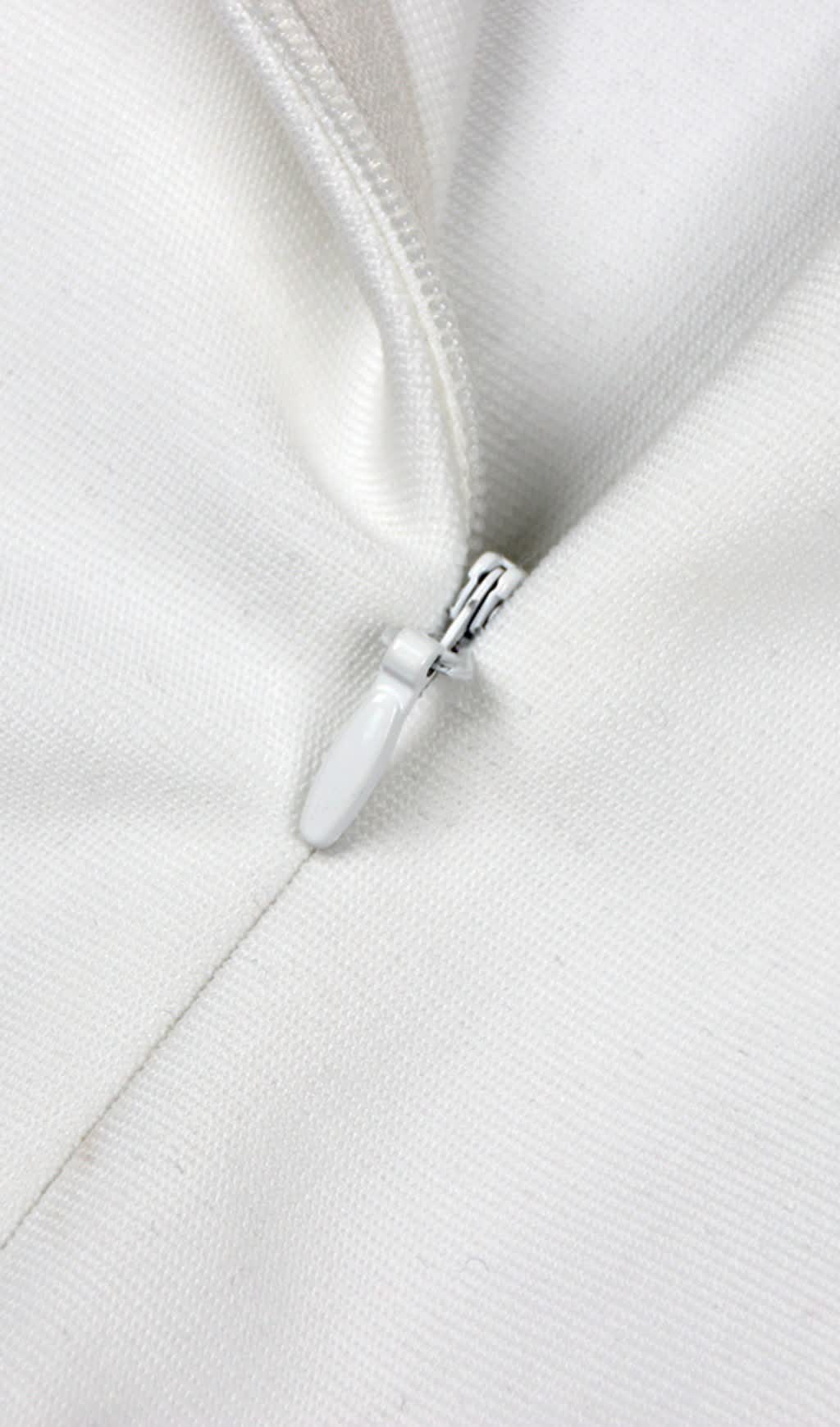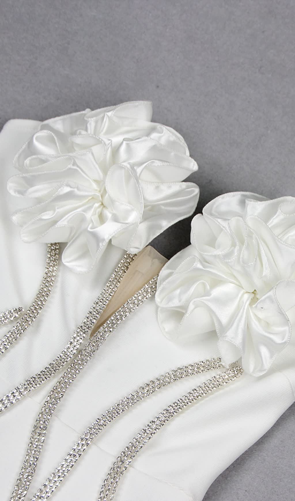 OFF SHOULDER FLOWER EMBELLISHED BODYCON GOWN IN WHITE