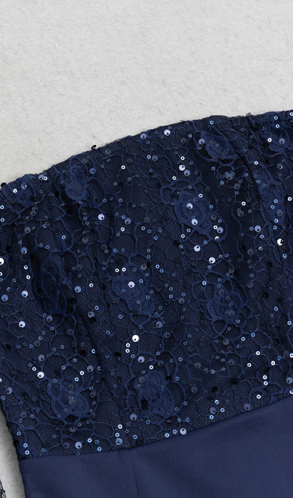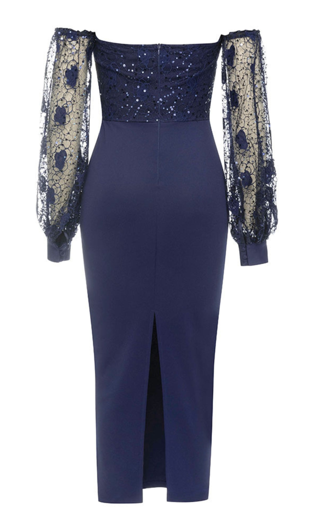 This dress has a navy blue color, off - shoulder neckline, and lace sleeves with sequins. The elegant, feminine design is eye - catching. Ideal for ��holiday break dress to impress�� gatherings, as ��hoco dress inspo�� for homecoming, or a ��celebrity event dress to impress�� occasion. Its refined, glamorous style lets you ��dress to impress�� confidently, perfect for formal events, parties, or special outings to stand out.