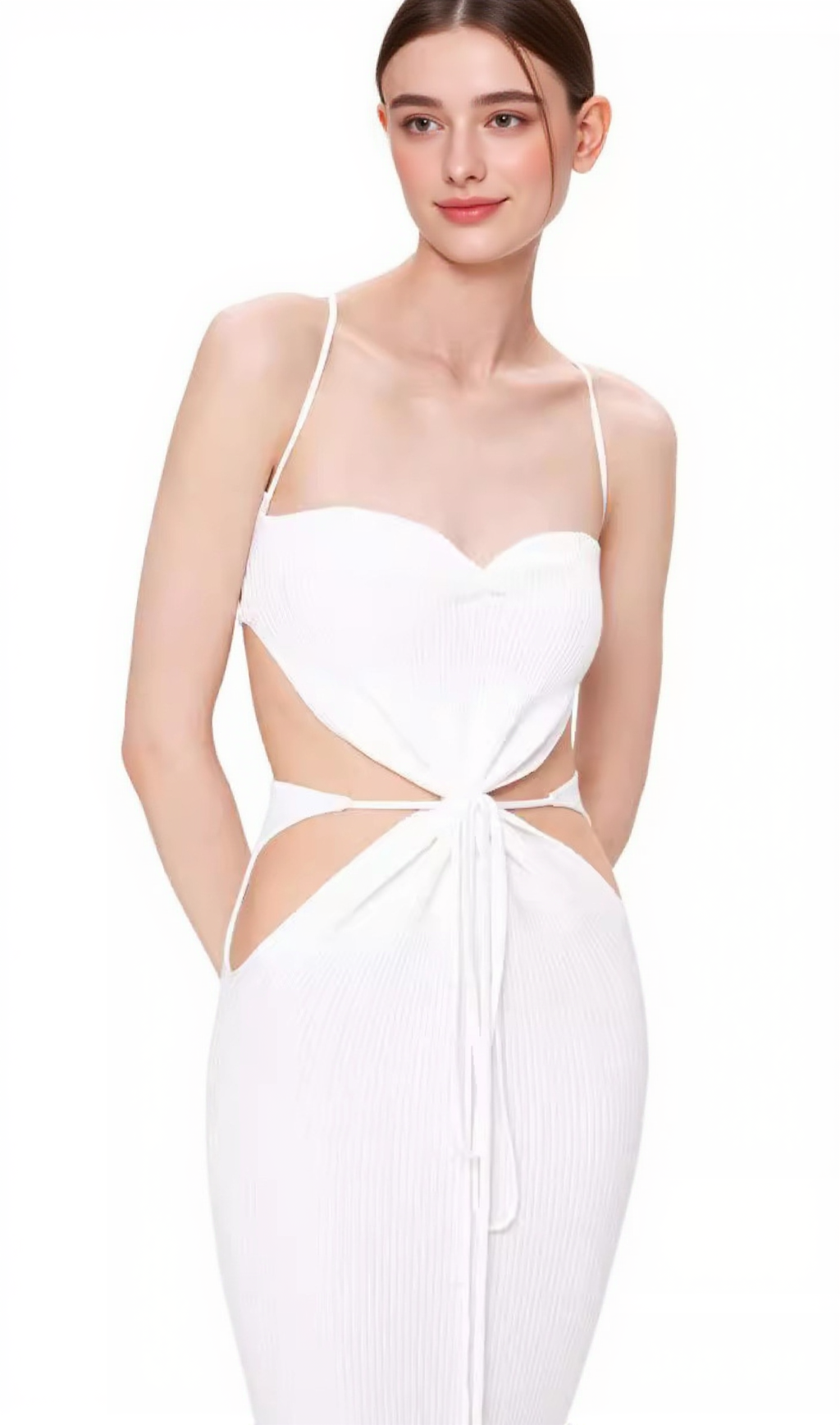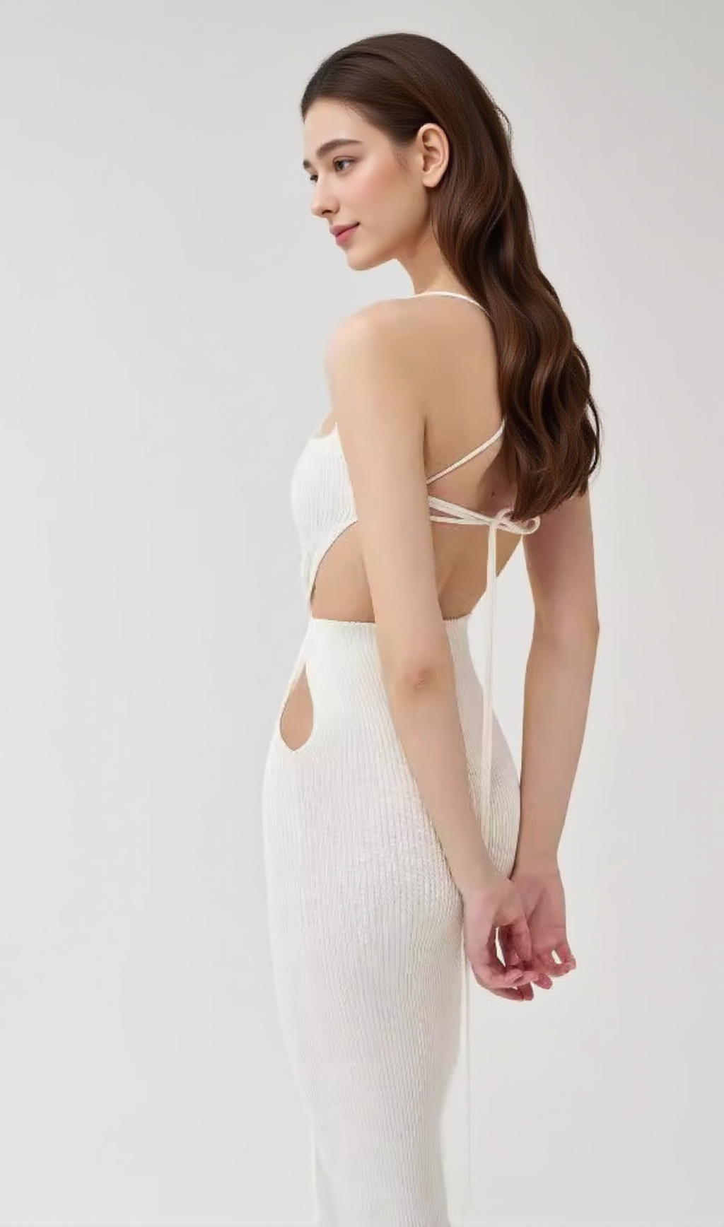 The dress is overall in a form - fitting straight silhouette, hugging the body lines and presenting an elegant posture. The waist has a drawstring design, which can be adjusted for tightness according to the wearer's preference. This not only accentuates the waistline and creates a more flattering body proportion but also adds to the design's flair and versatility. There are also flower decorations on the side of the dress, echoing those on the chest and enhancing the overall harmony. This design is suitable for occasions such as vacations, garden parties, and light - business social events, enabling the wearer to showcase a fresh and elegant demeanor.