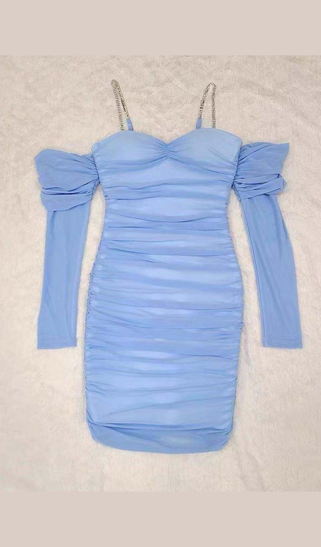 OFF SHOULDER MESH SKINNY MINI DRESS IN LIGHT BLUE