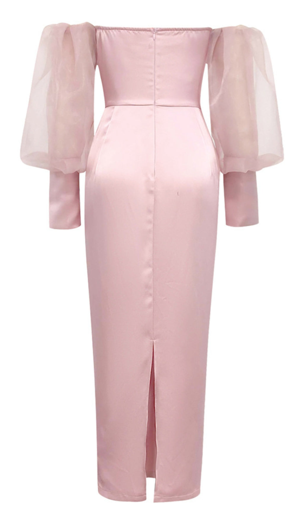 Off - Shoulder Organza - Sleeve Satin Midi Dress in Pink