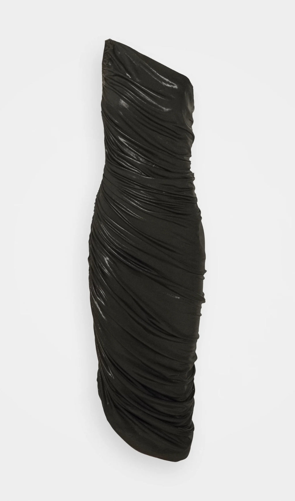 Elevate your style with our OFF-SHOULDER PLEATED DRESS. This elegant and versatile dress features a flattering off-shoulder neckline and delicate pleating. Perfect for any occasion, it will make you feel confident and chic. An essential piece for your wardrobe.