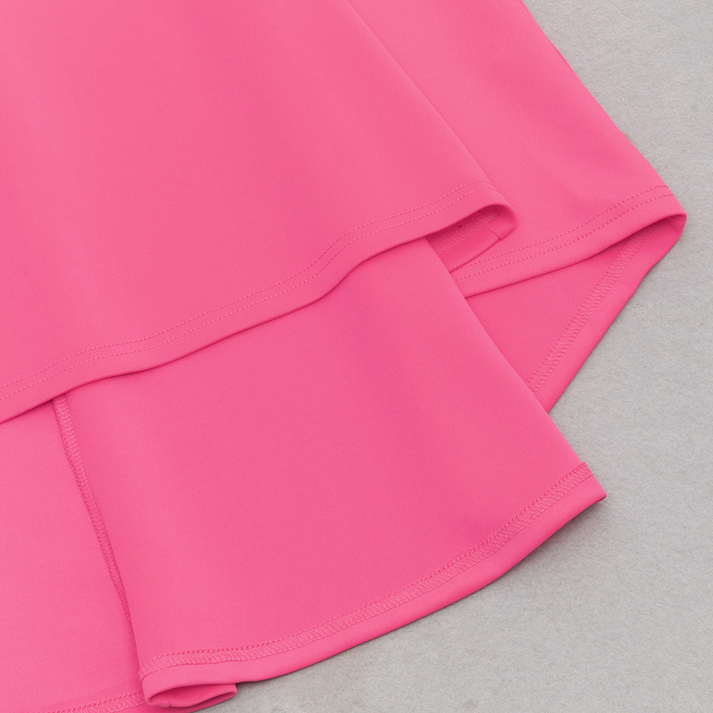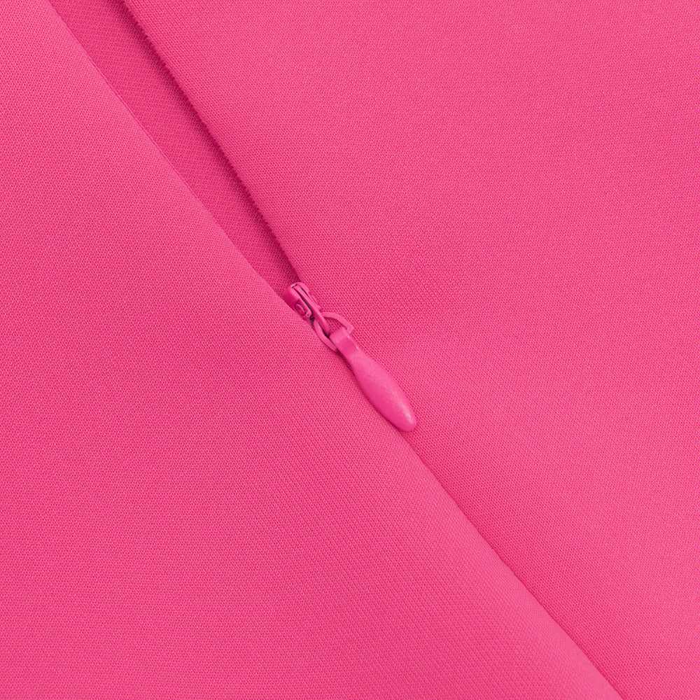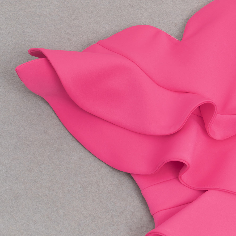 OFF SHOULDER RUFFLE TRIM BODYCON GOWN IN PINK