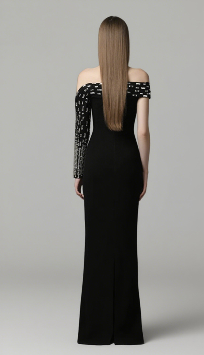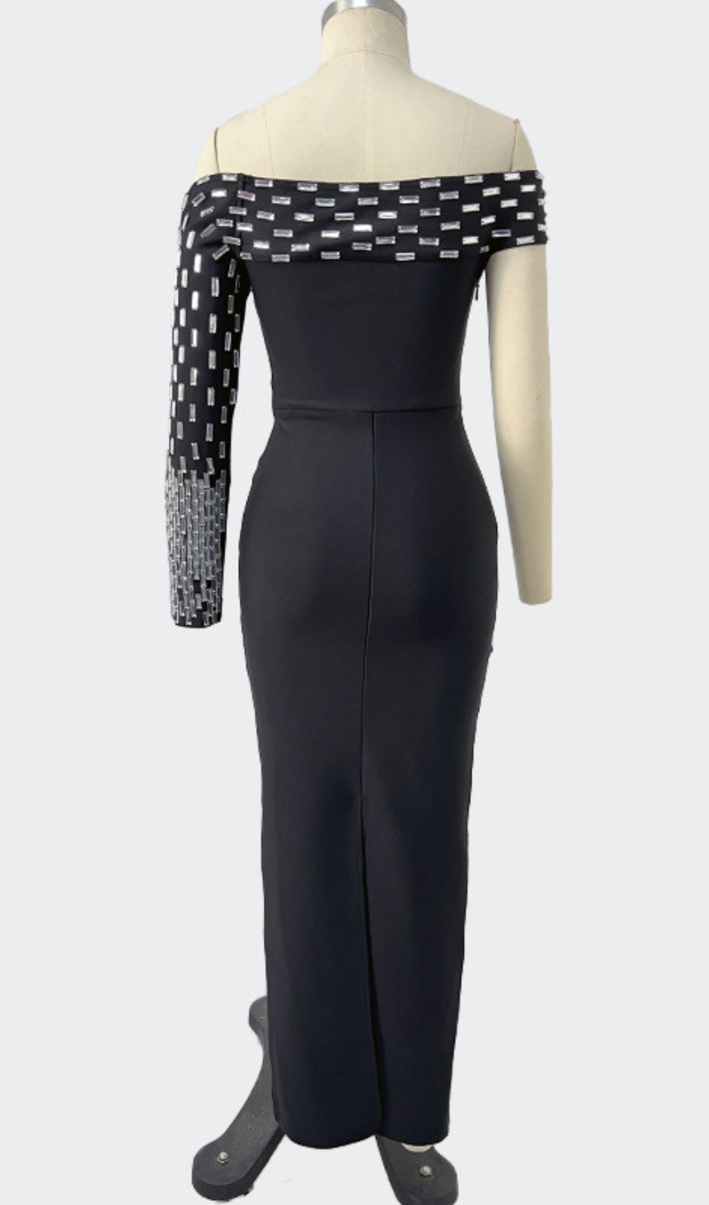 Off Shoulder Silver Embellished One Sleeve in Black