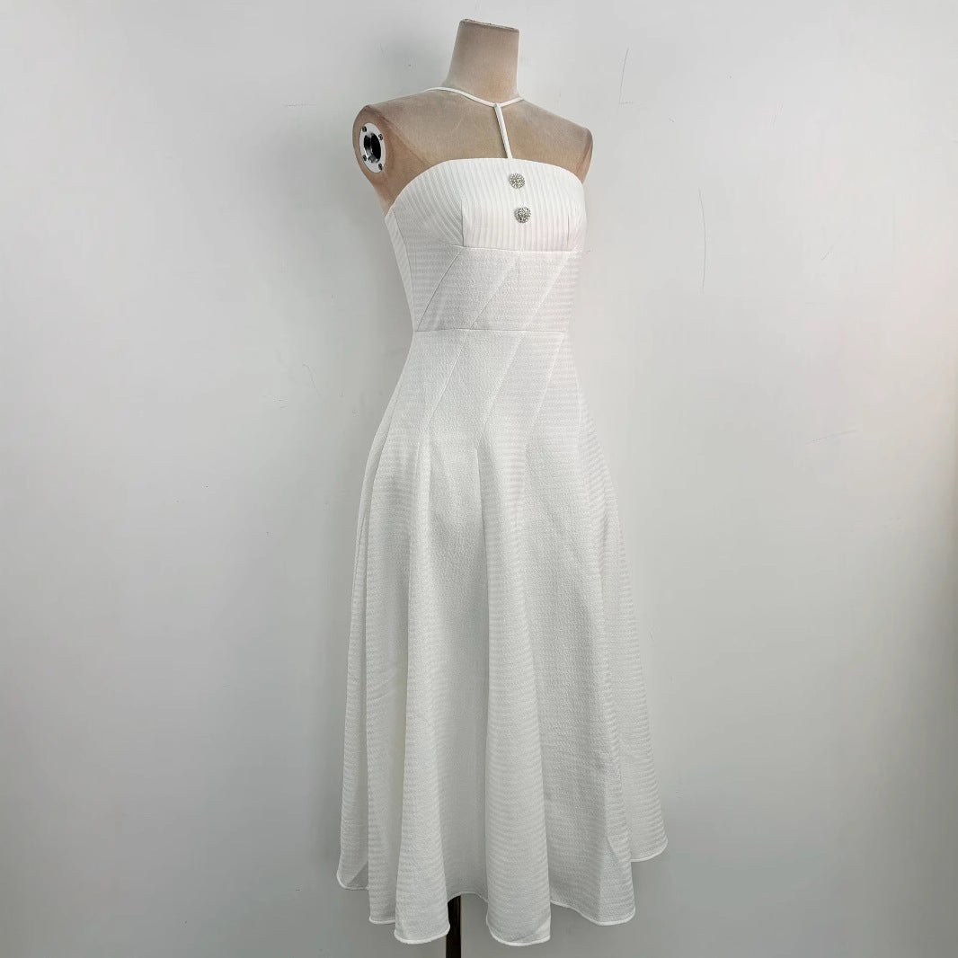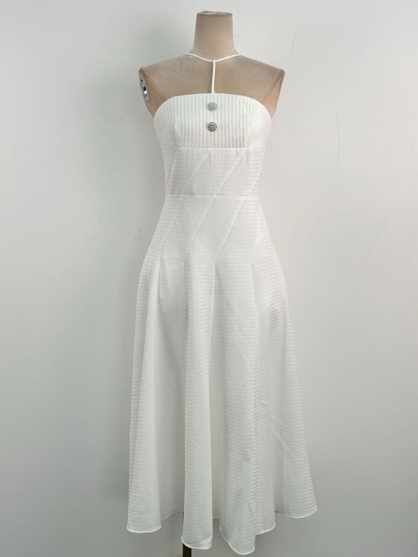 • The strap connects to the dress creats V-neck
