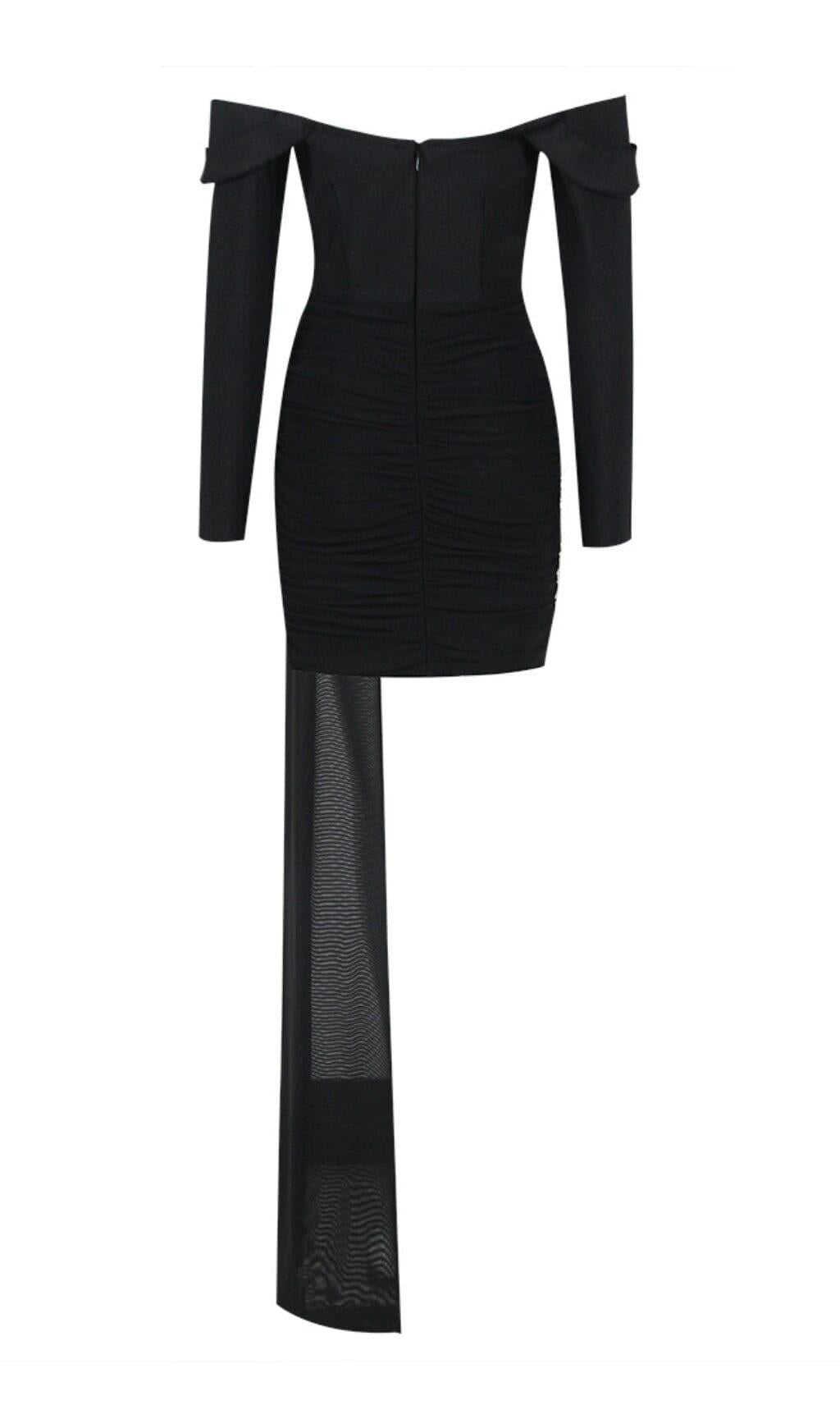OFF SHOULDER STRAP MINI DRESS IN BLACK