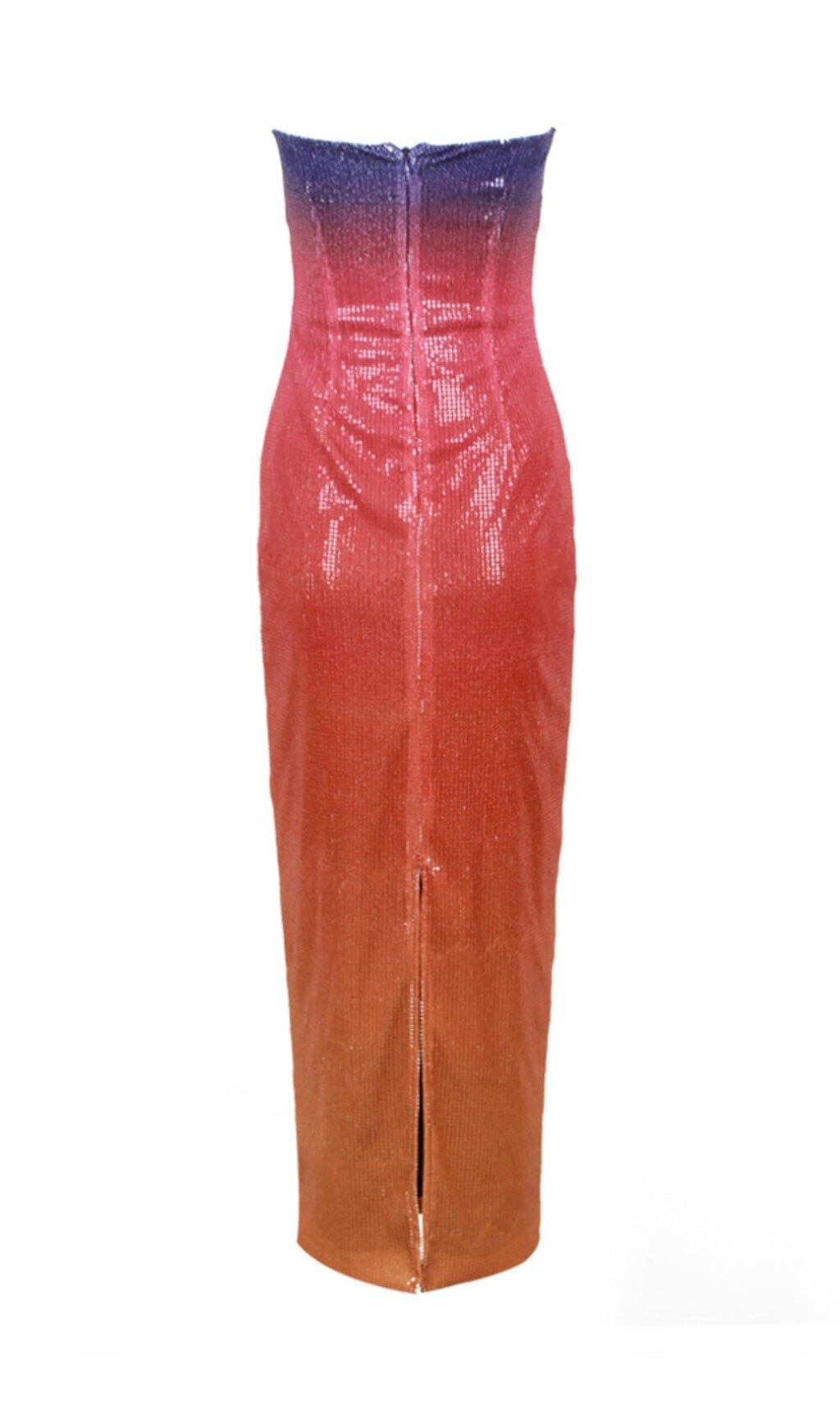 OFF-SHOULDER SUNSET SEQUIN MIDI DRESS