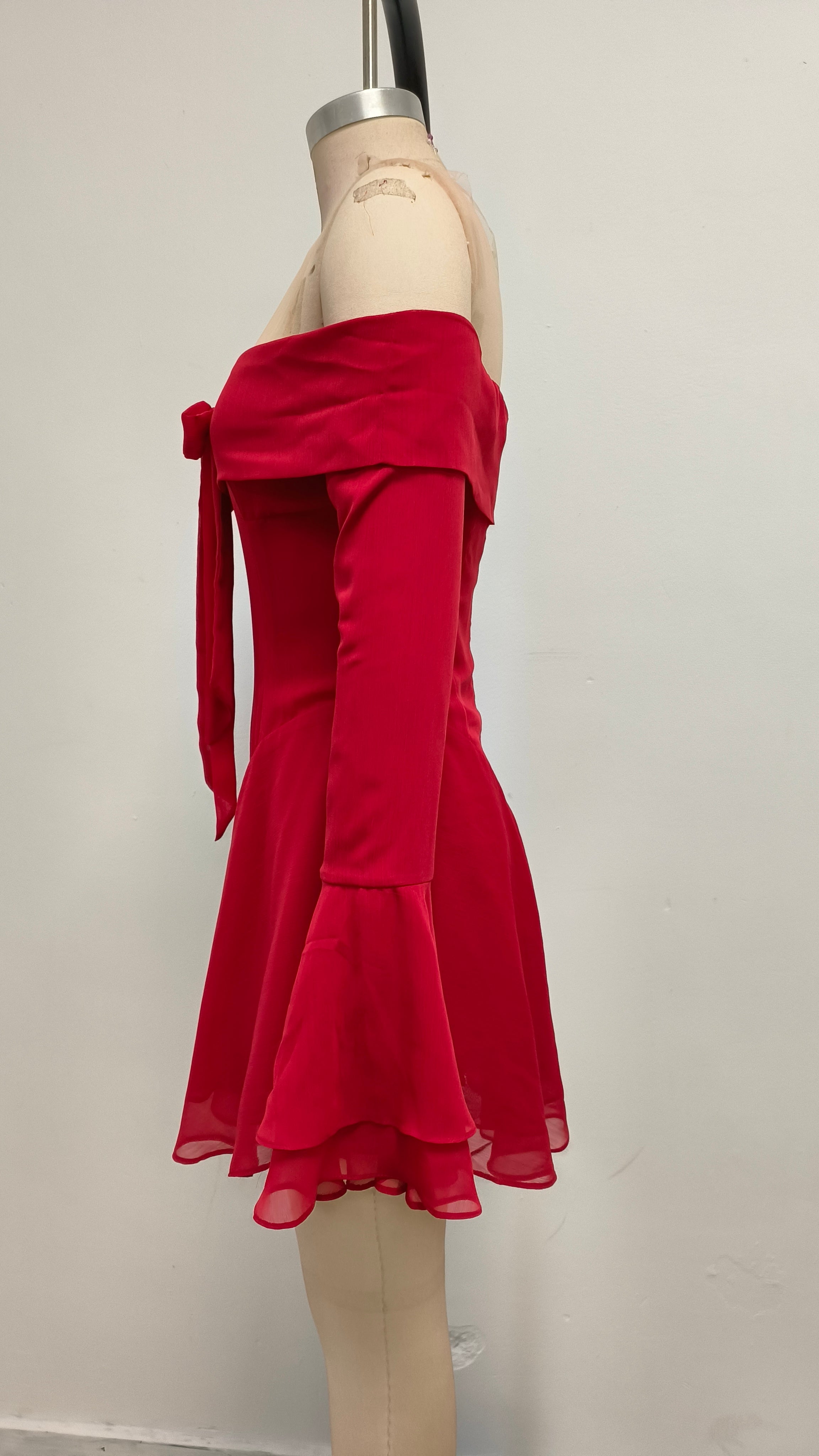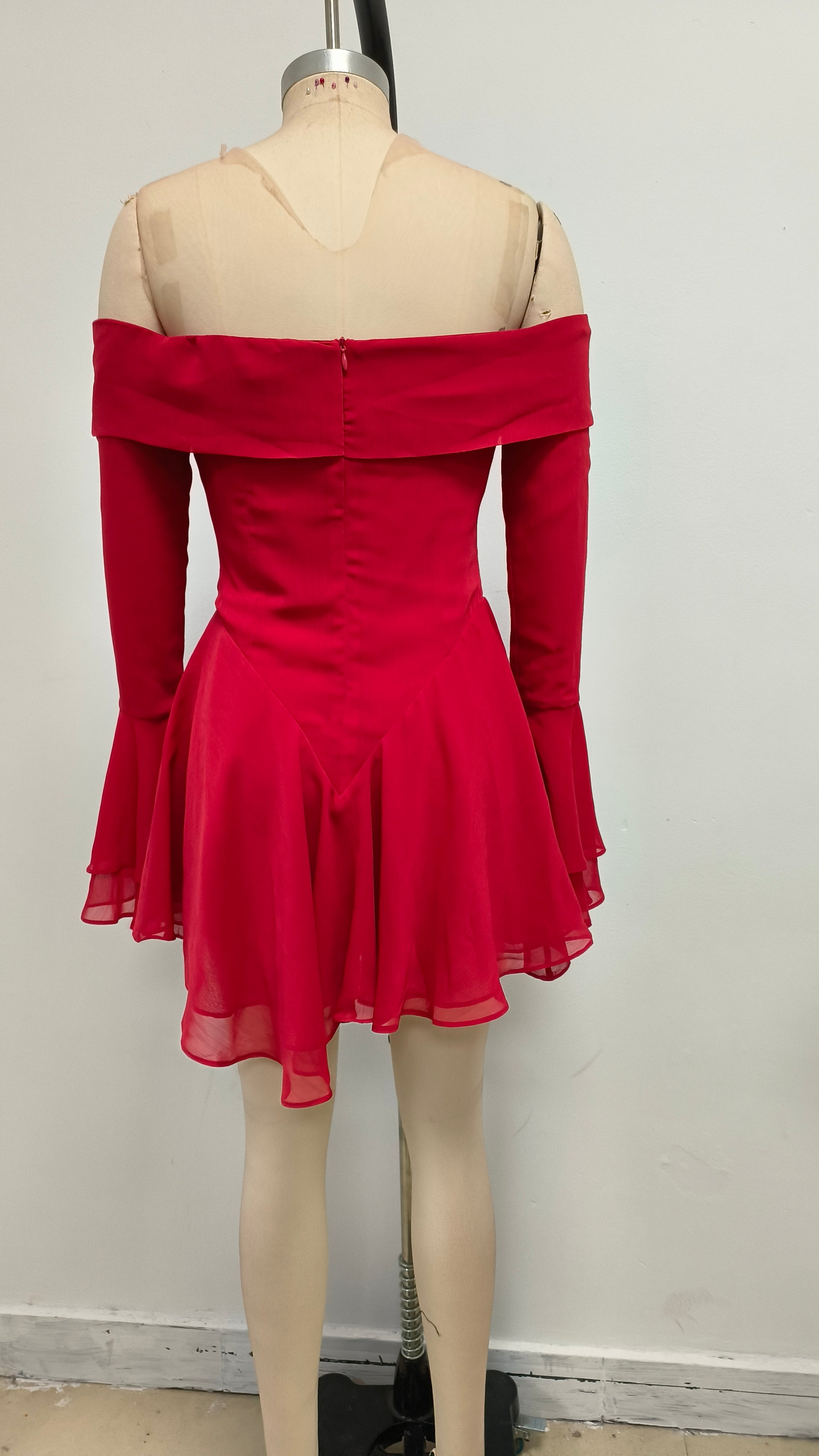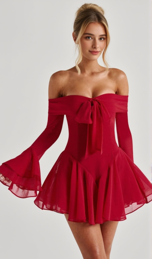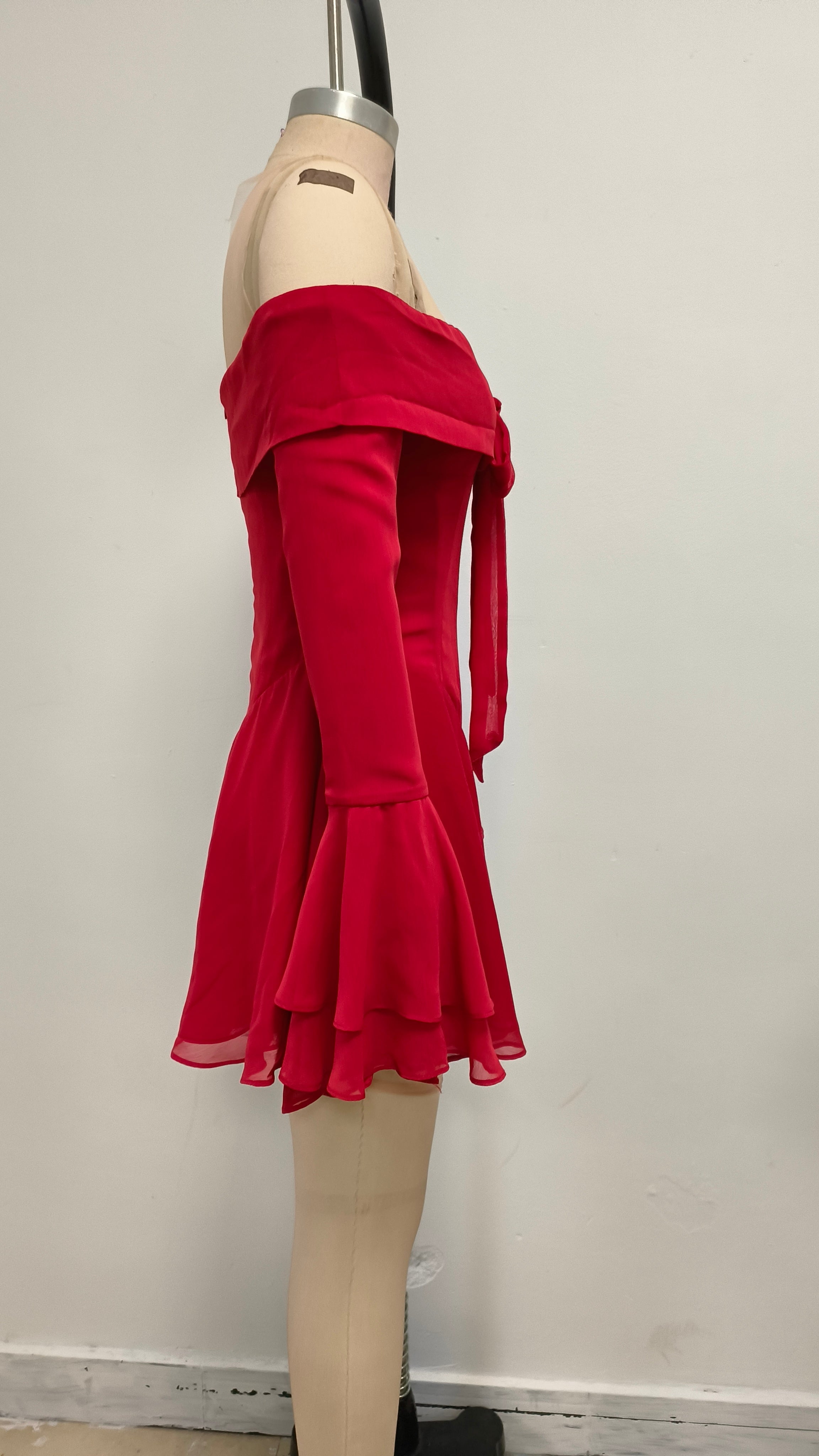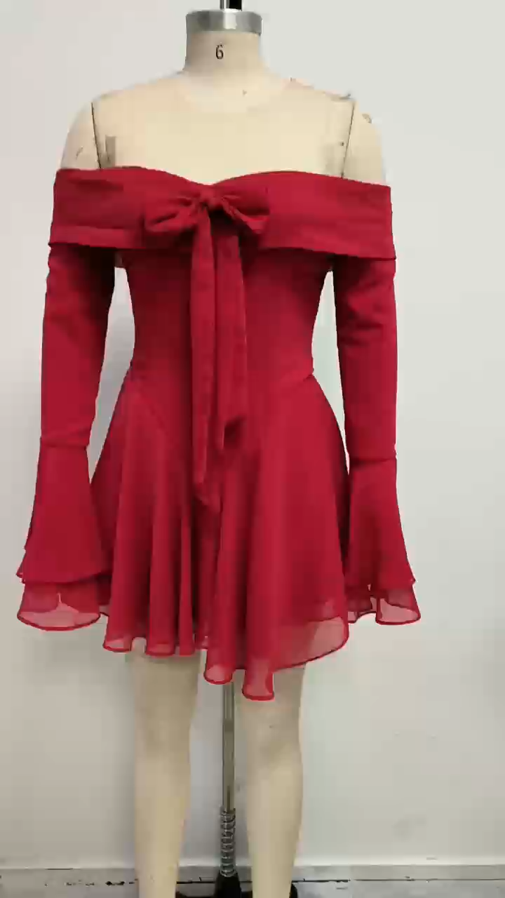 This dress exudes a style that is perfect for social and entertainment venues like parties and bars. When paired with exquisite jewelry and high - heeled shoes, it has the power to transform the wearer into the center of attention. The combination of its unique design elements, from the alluring off - the - shoulder style to the charming ruffled hem, makes it a show - stopping piece. It allows the wearer to showcase confidence and style, making a bold fashion statement in any glamorous setting.