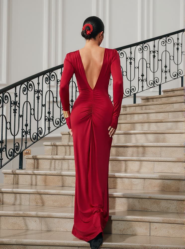 The Ofir V Neck Ruched Maxi Dress In Wine is the perfect choice for a special occasion. Crafted from polyester fabric, it features a flattering V-neck cut and ruching at the waist for shape and movement. The hot pink hue adds a touch of femininity to this eye-catching dress.