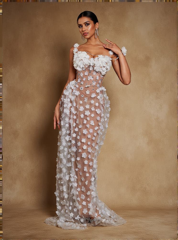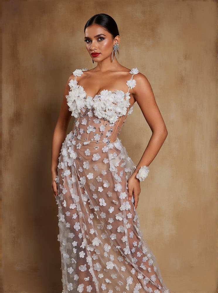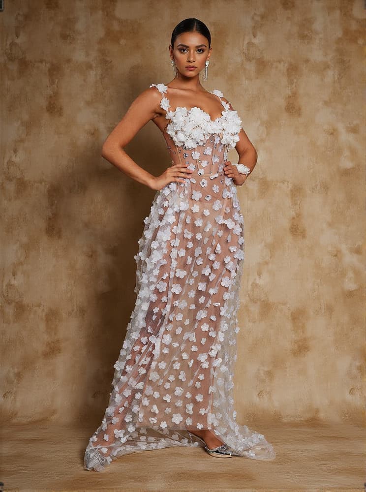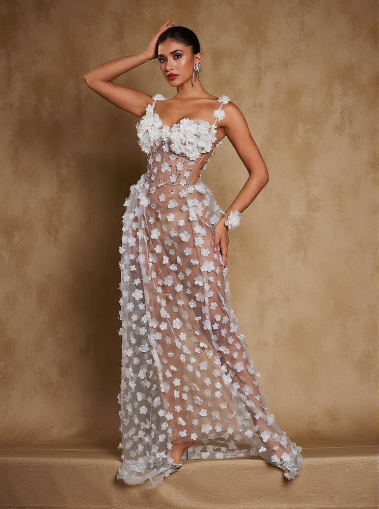 Experience luxury and elegance with our Oksana Spaghetti Flower Corset Maxi Dress. With delicate floral detailing and a flattering corset bodice, this dress exudes femininity and style. Perfect for special occasions or a night out, you'll feel confident and beautiful in this timeless piece. Own the spotlight in our Oksana dress!
