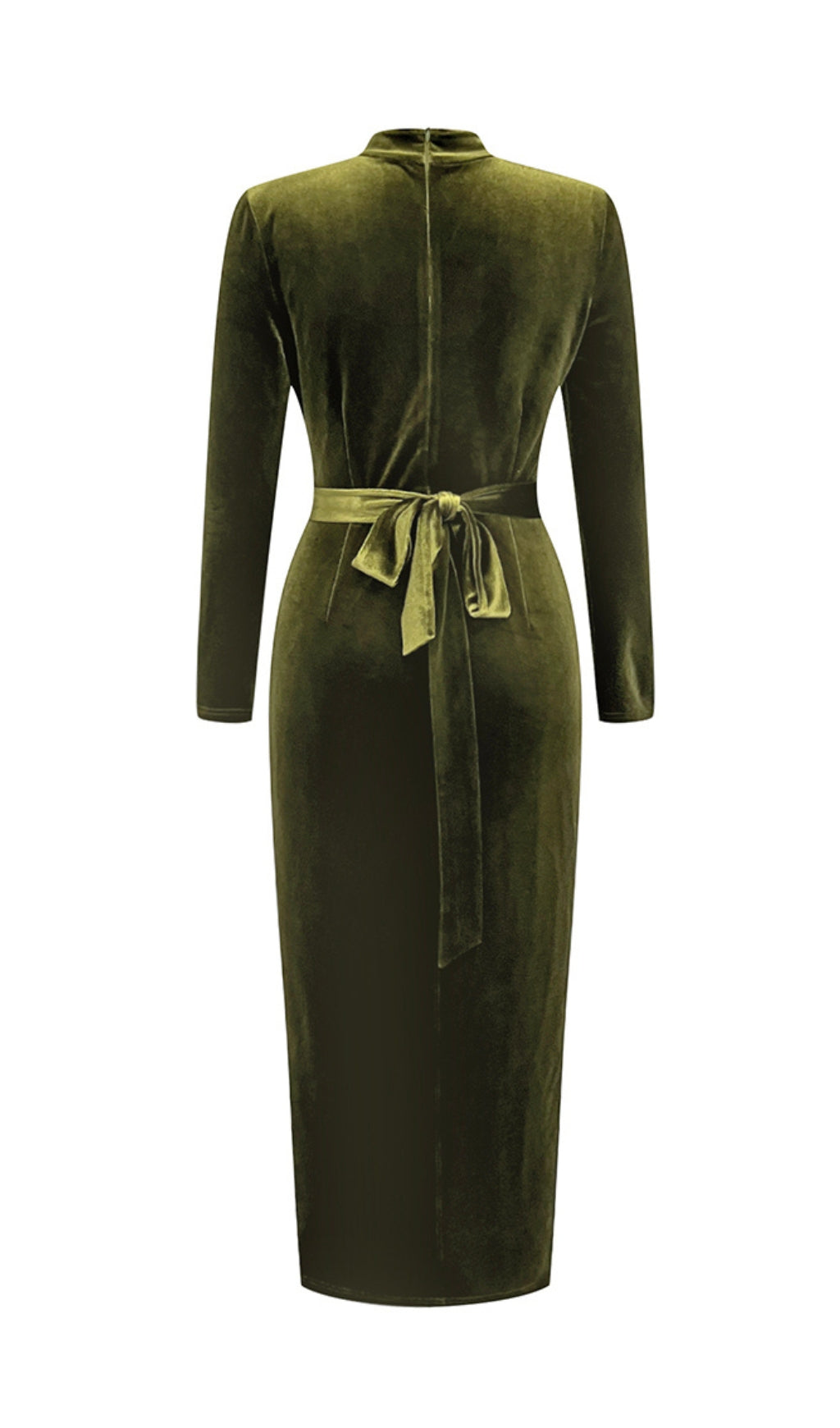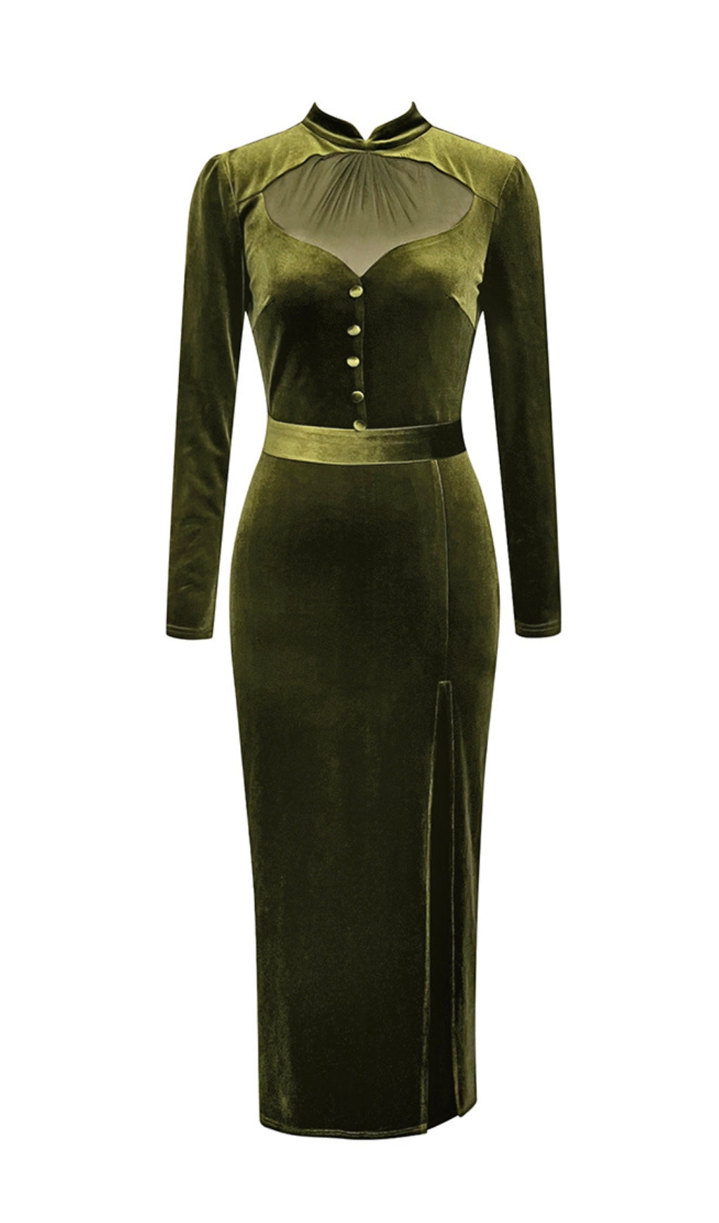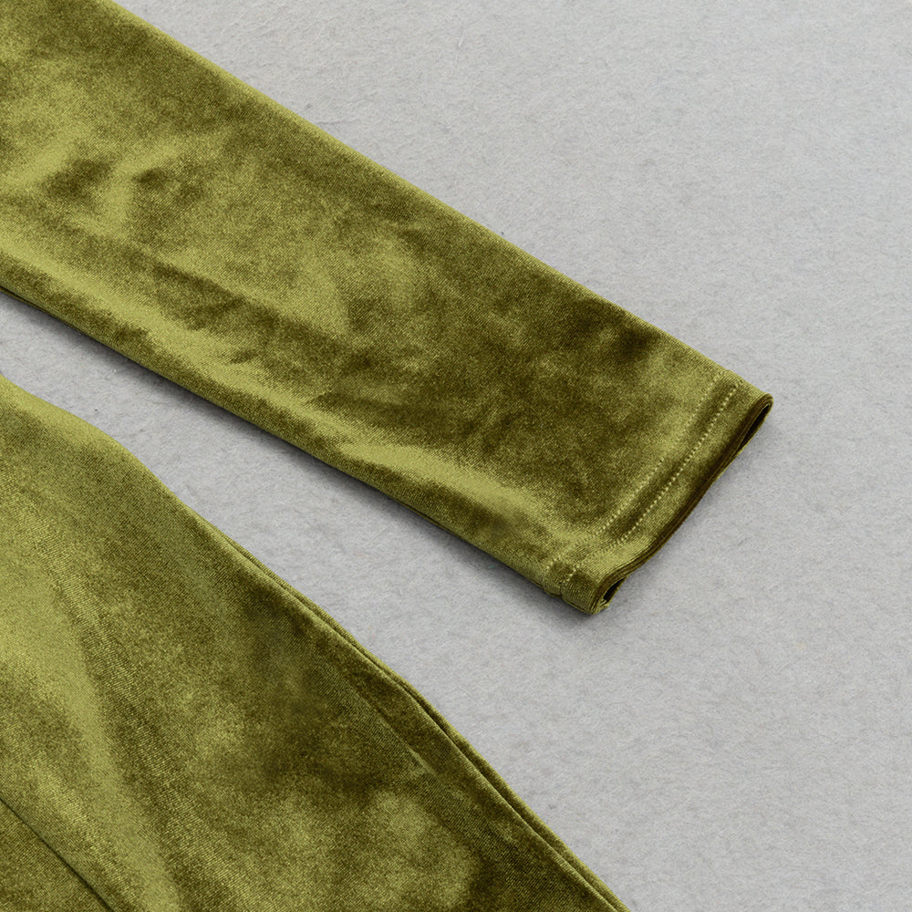 ABIONA OLIVE MESH VELVET SLIT MIDI DRESS
