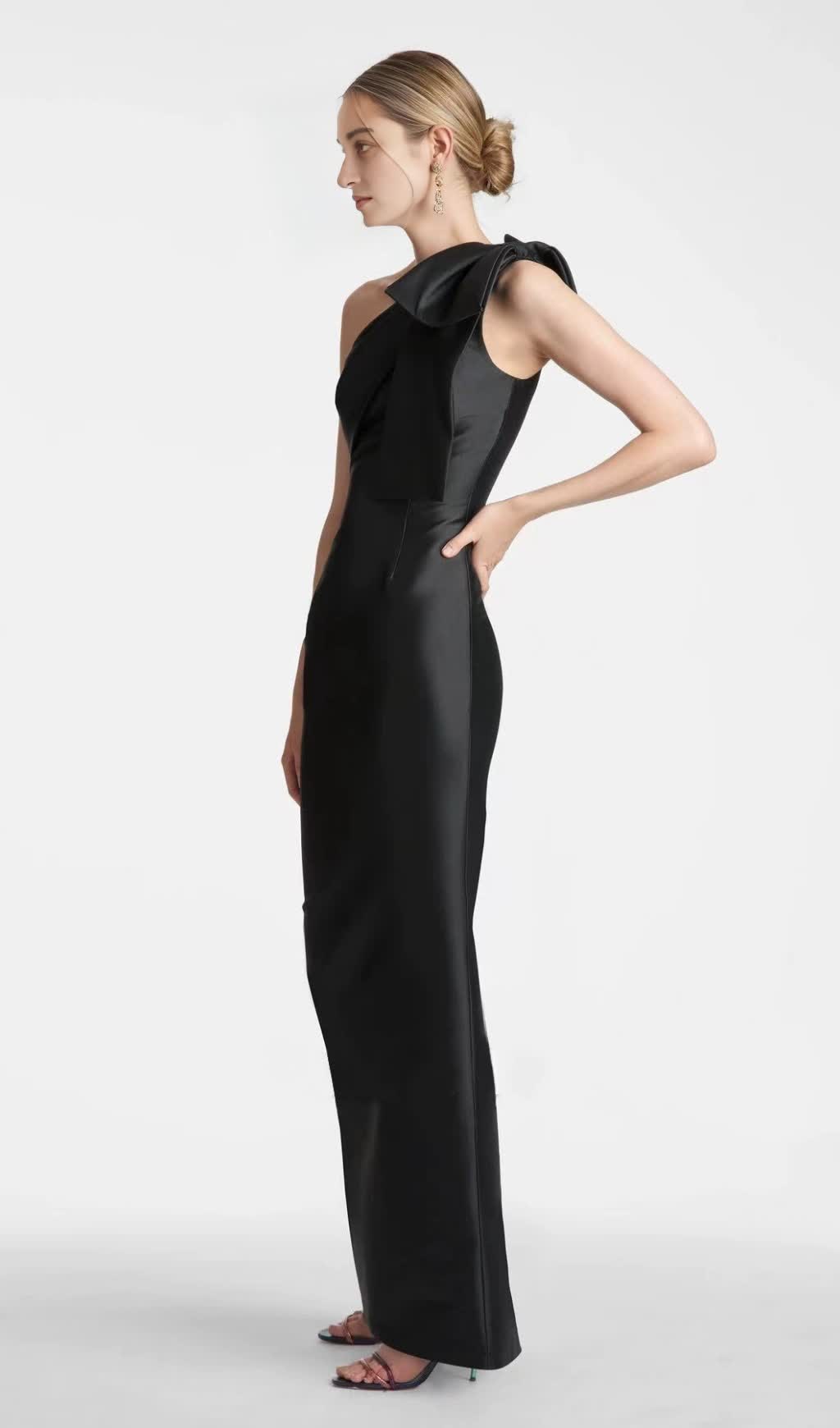 ONE-SHOULDER BOW MAXI DRESS IN BLACK