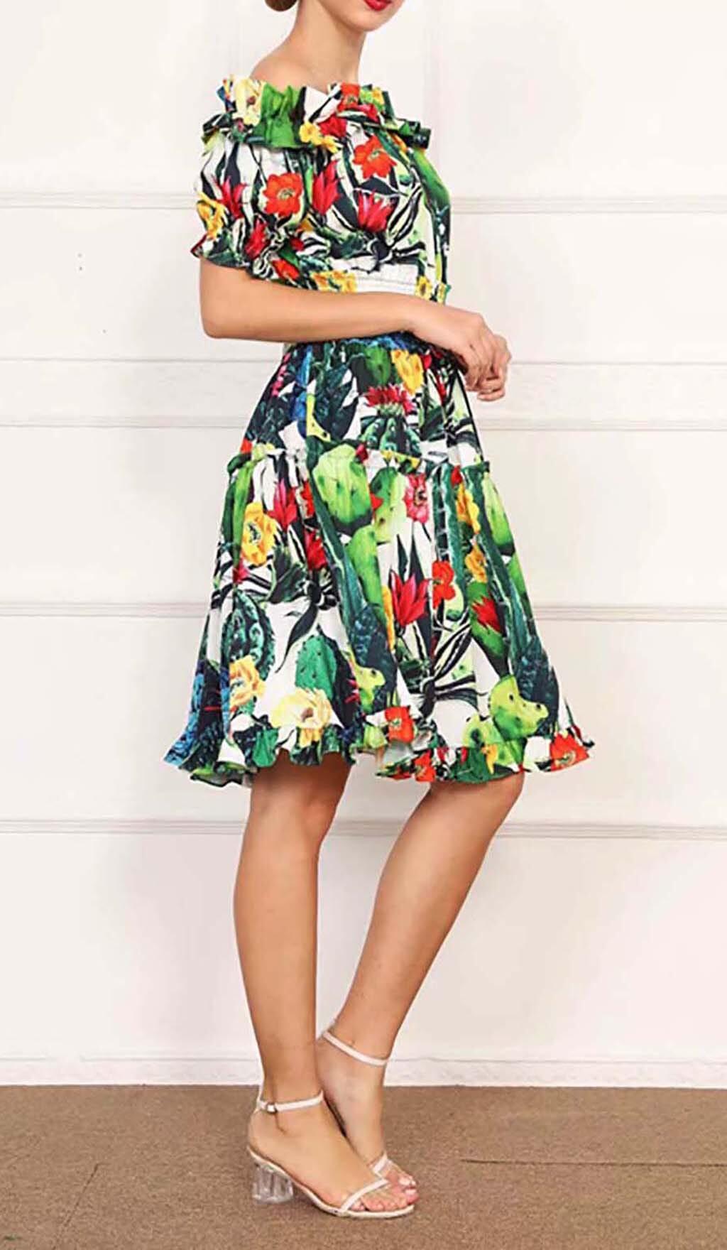 ONE SHOULDER CACTUS MINI DRESS IN GREEN