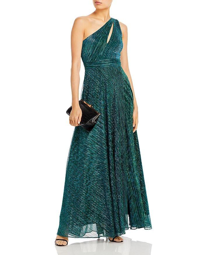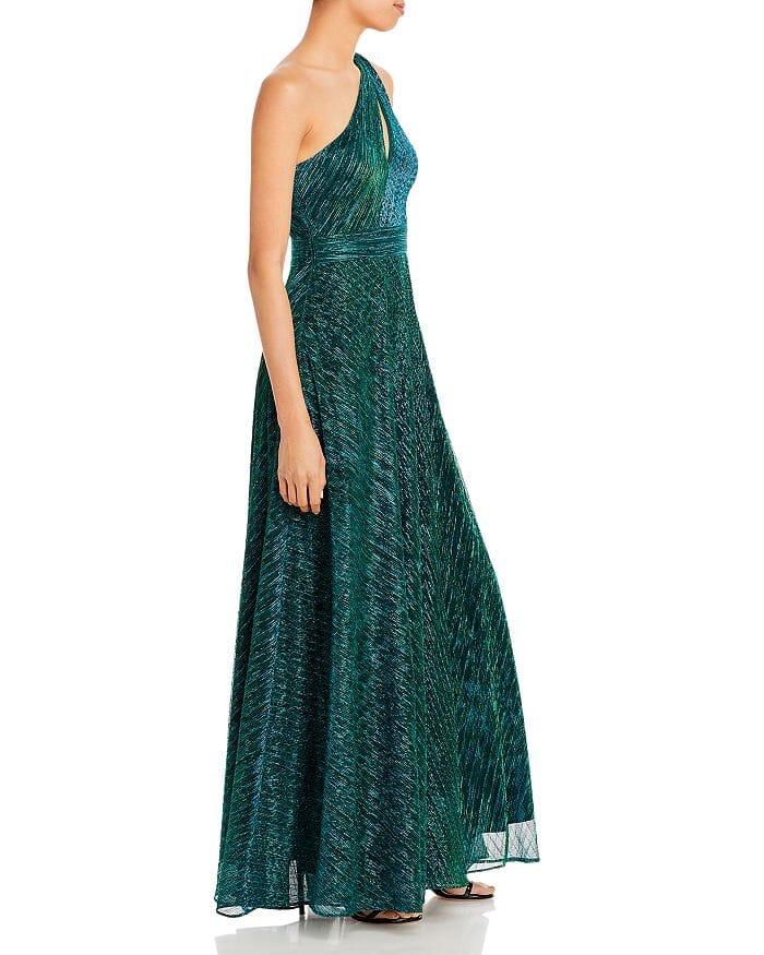 ONE SHOULDER CRINKLED METALLIC GOWN