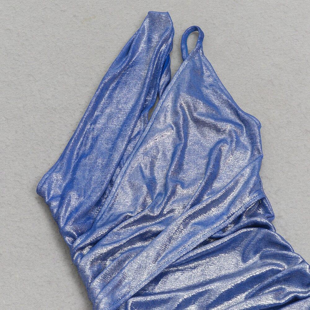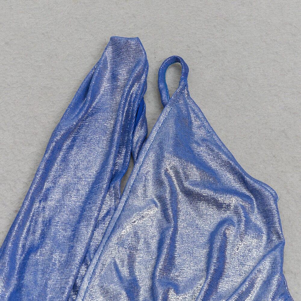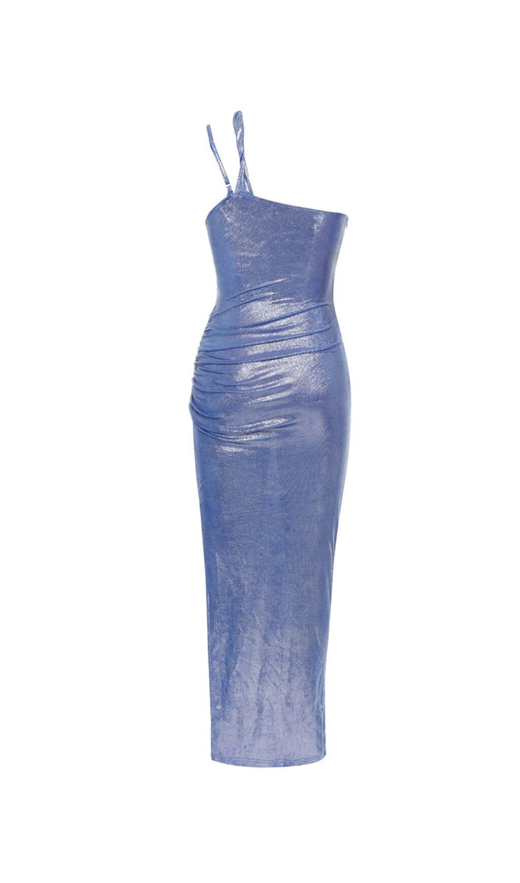 ONE SHOULDER CUT OUT SPLIT METALLIC DRESS