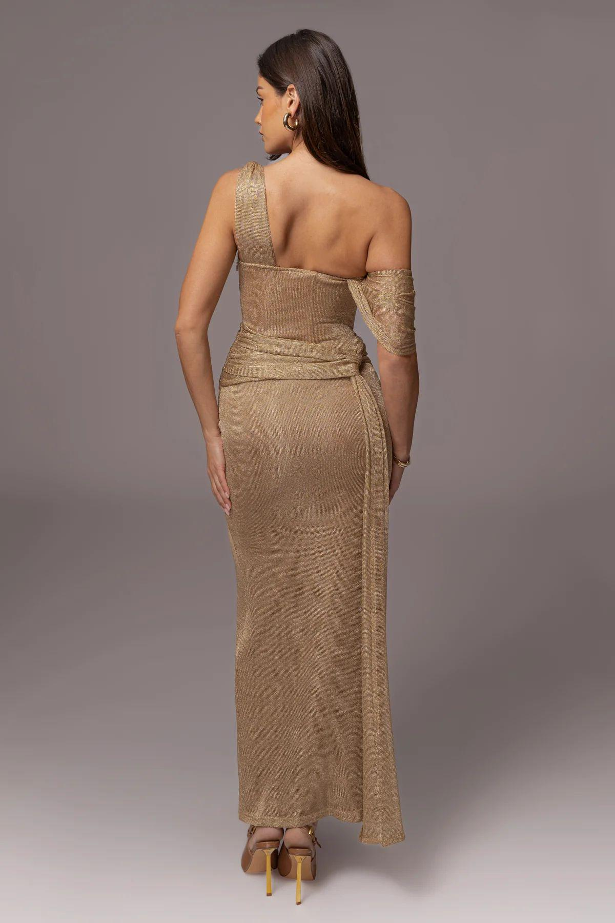 One Shoulder Draped Metallic Gown